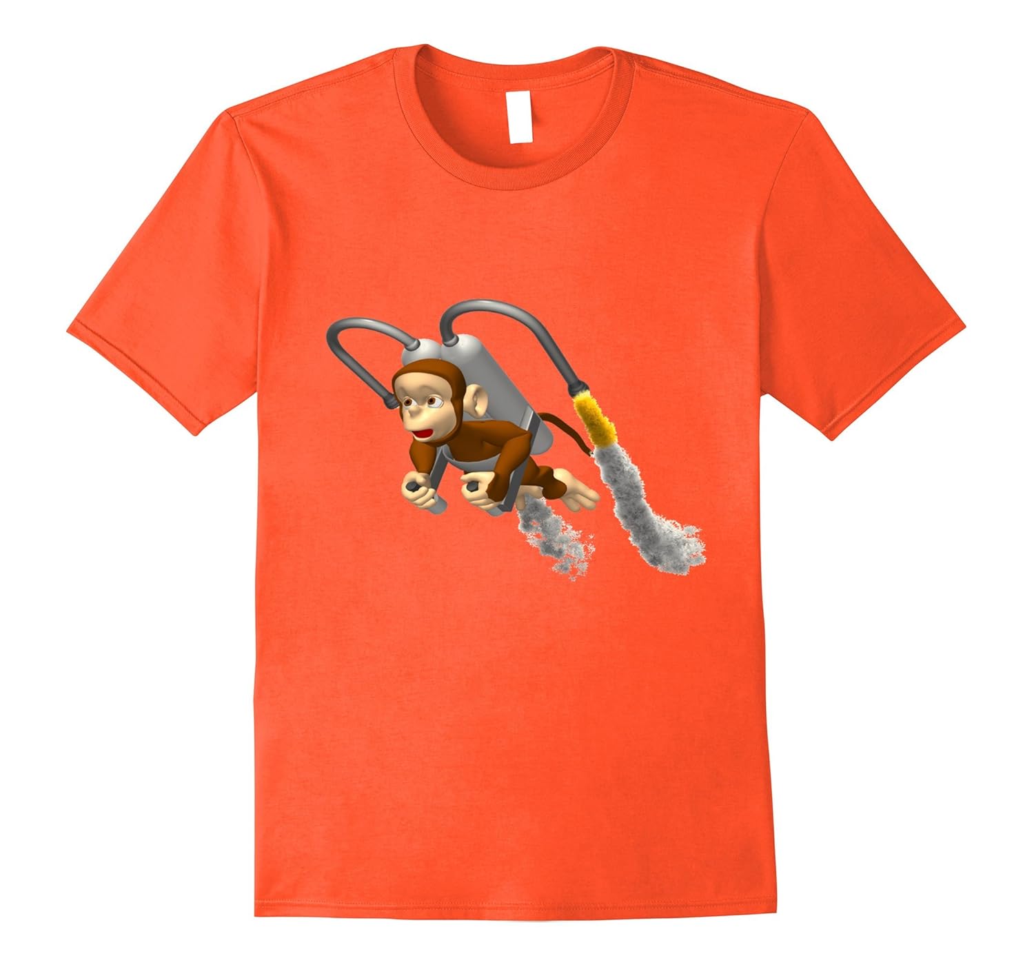 Solid colors: 100% Cotton; Heather Grey: 90% Cotton, 10% Polyester; All Other Heathers: 65% Cotton, 35% Polyester; Imported; Machine wash cold with like colors, dry low heat; Featuring a cute animated cartoon monkey wearing a jet pack on his back and flying high, holding on tight to the handles as he steers it around.; Fun monkey,fly,jet pack,silly,funny,pet,blast off,pilot,navigate,primate,soar,cute,flying monkey shirt!; Lightweight, Classic fit, Double-needle sleeve and bottom hem