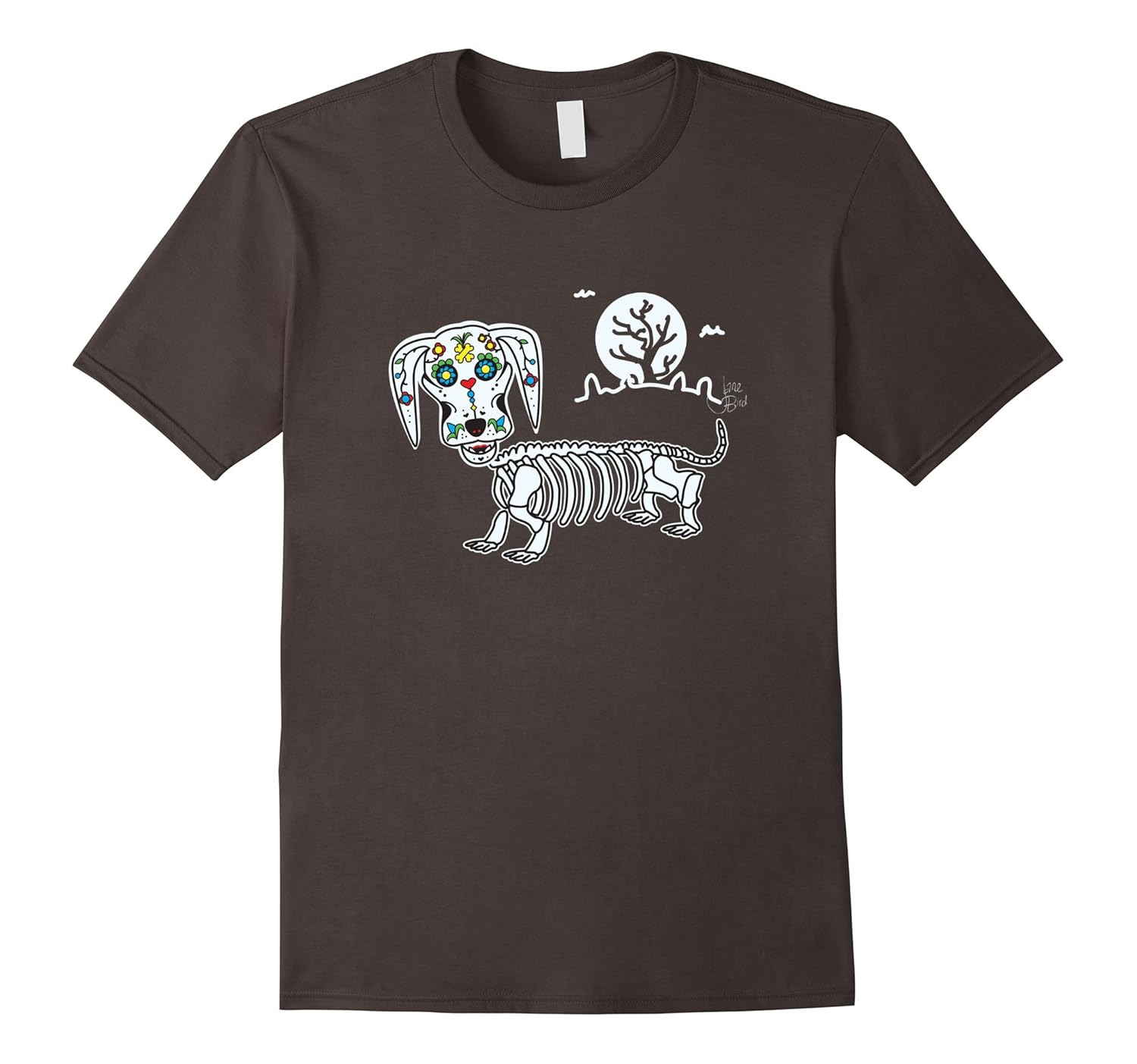 100% Cotton, Imported, Machine wash cold with like colors, dry low heat, Colorful sugar skull-style design for wiener dog lovers. Halloween/Day of the Dead/Dachshunds, Lightweight, Classic fit, Double-needle sleeve and bottom hem