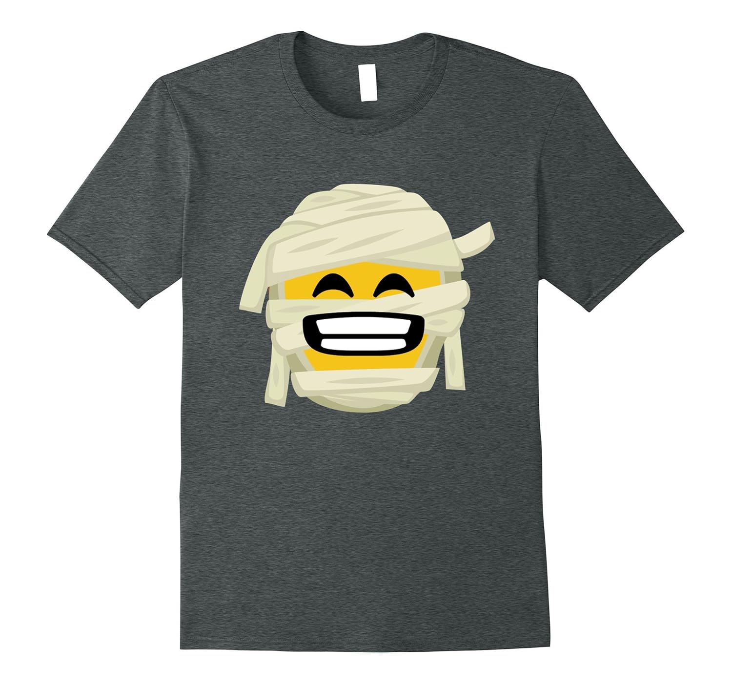 Solid colors: 100% Cotton; Heather Grey: 90% Cotton, 10% Polyester; All Other Heathers: 65% Cotton, 35% Polyester, Imported, Machine wash cold with like colors, dry low heat, Perfect Halloween Gift for people who loves Mummy. Big Smile Emoji effect Graphic Tee Shirt for Halloween Costumes or Halloween Outfit, Great Shirts for Parties and Trick or Treats, Premium Quality shirt looks great in five amazing color of your choices and also available different sizes for men women, him her mom dad, ladies girls boys teens, grandma and grandpa. Lightweight, Classic fit, Double-needle sleeve and bottom hem