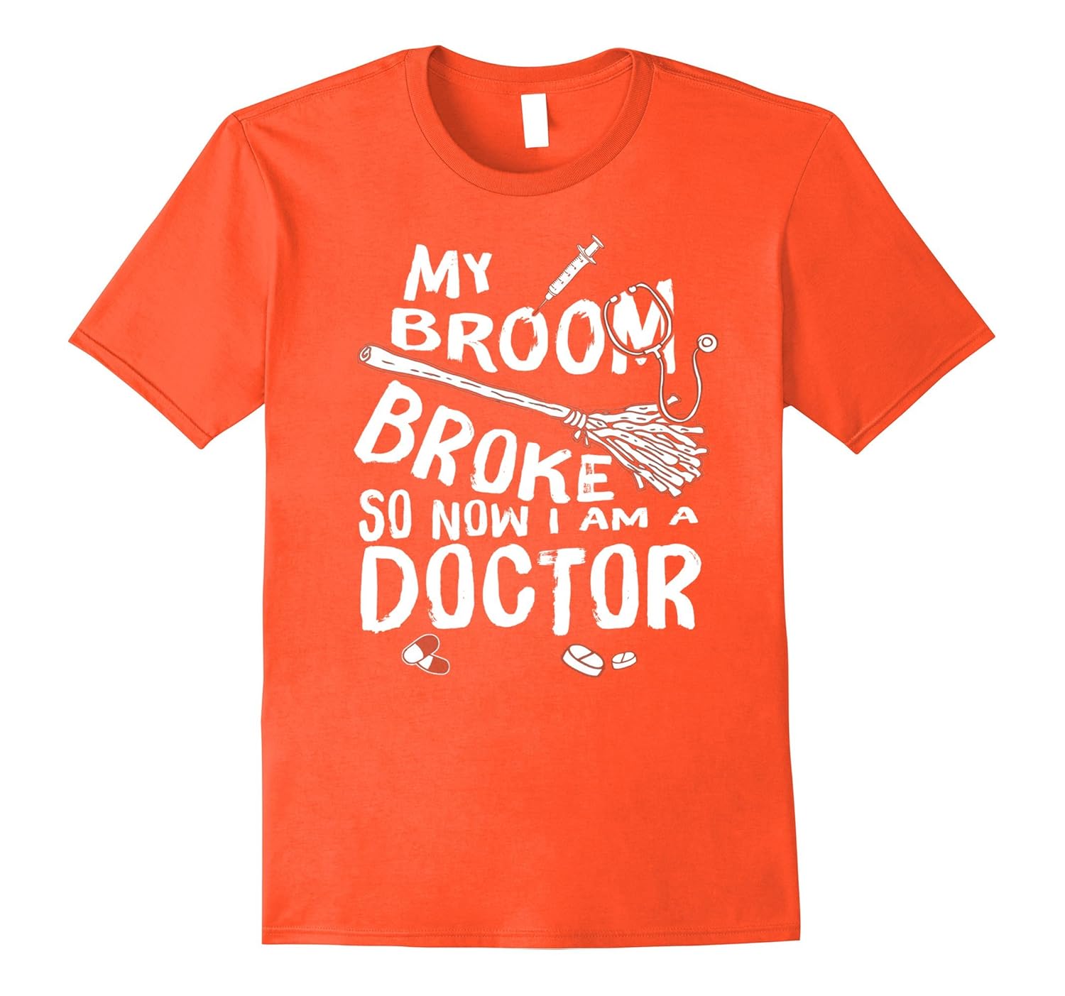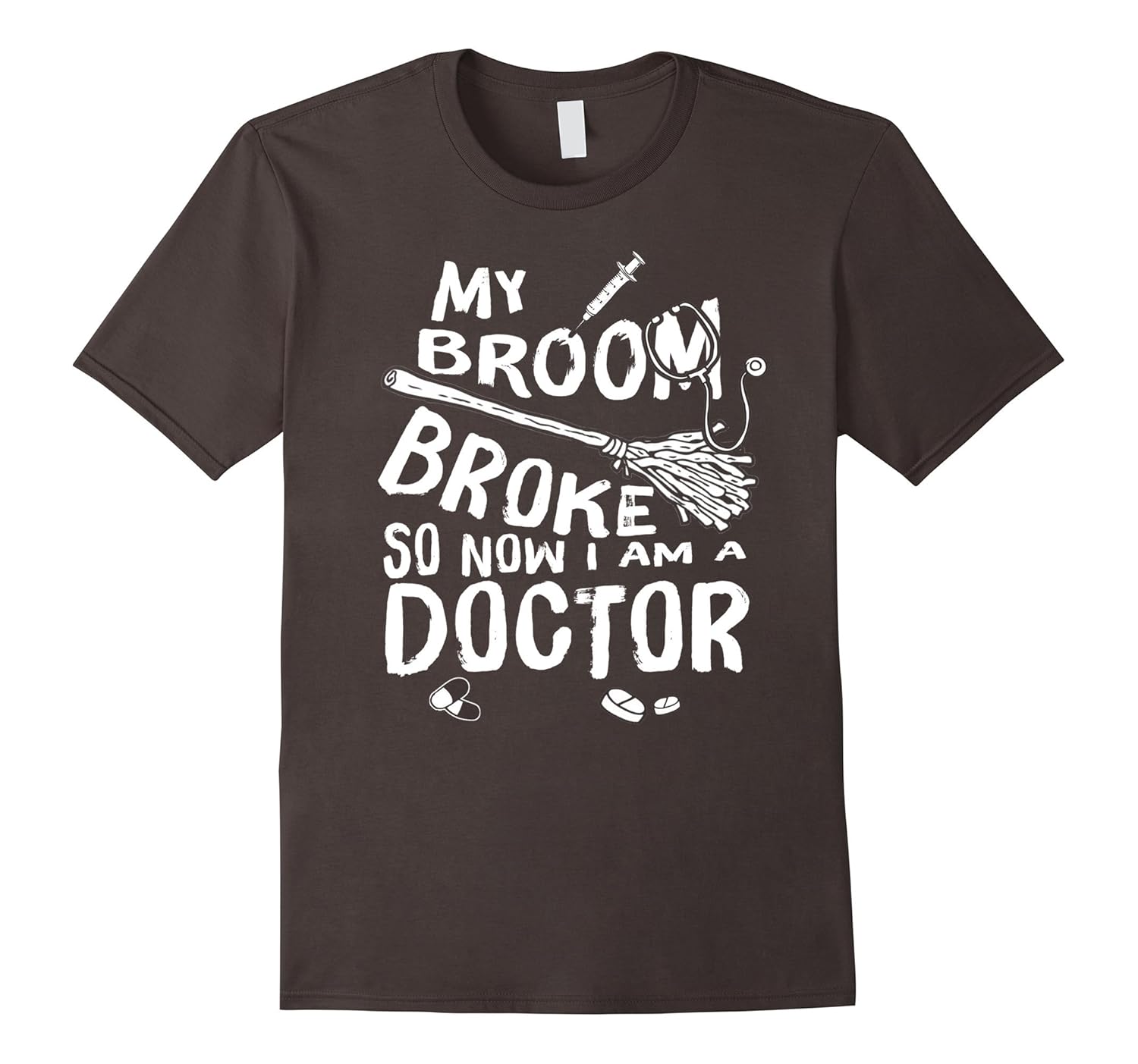 Solid colors: 100% Cotton; Heather Grey: 90% Cotton, 10% Polyester; All Other Heathers: 65% Cotton, 35% Polyester, Imported, Machine wash cold with like colors, dry low heat, halloween tshirt,halloween costume tshirt,halloween tshirt women,halloween tshirt men,adult halloween tshirt,halloween tshirt boys,happy halloween tshirt,halloween tshirt funny, My Broom Broke So Now I Am A Doctor Halloween T-Shirt, Lightweight, Classic fit, Double-needle sleeve and bottom hem