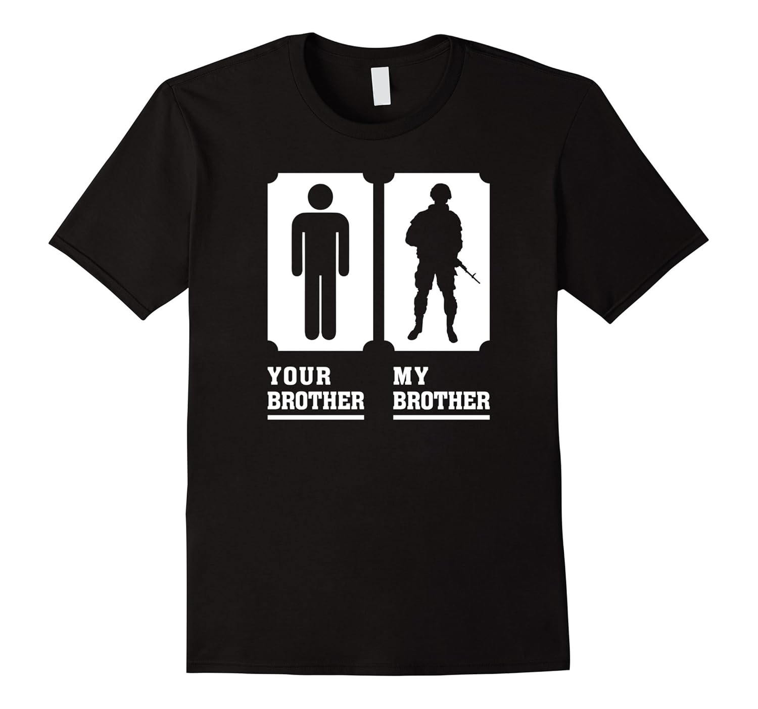 Solid colors: 100% Cotton; Heather Grey: 90% Cotton, 10% Polyester; All Other Heathers: 65% Cotton, 35% Polyester, Imported, Machine wash cold with like colors, dry low heat, Funny Military t-shirt for a girl and for a woman whose man brother is in Army and this makes the sister to be so proud about him being a military man so get this super cute t-shirt for women in love with such a strong man. Great Christmas family gift idea, Your brother is Armed Forced soldier and you are proud understanding his real mission for USA and people of the country to get freedom and that he is taught of understanding real life and protect the country then get this cool t-shirt. Lightweight, Classic fit, Double-needle sleeve and bottom hem