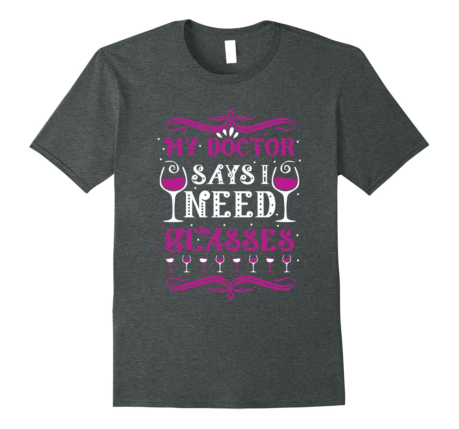 Solid colors: 100% Cotton; Heather Grey: 90% Cotton, 10% Polyester; All Other Heathers: 65% Cotton, 35% Polyester, Imported, Machine wash cold with like colors, dry low heat, Great for people who drink wine or beer in glasses for the holidays. Makes an awesome gift. For a more loose fit order one size up of My doctor says I need Glasses t-shirt Wine Drinking apparel. Lightweight, Classic fit, Double-needle sleeve and bottom hem