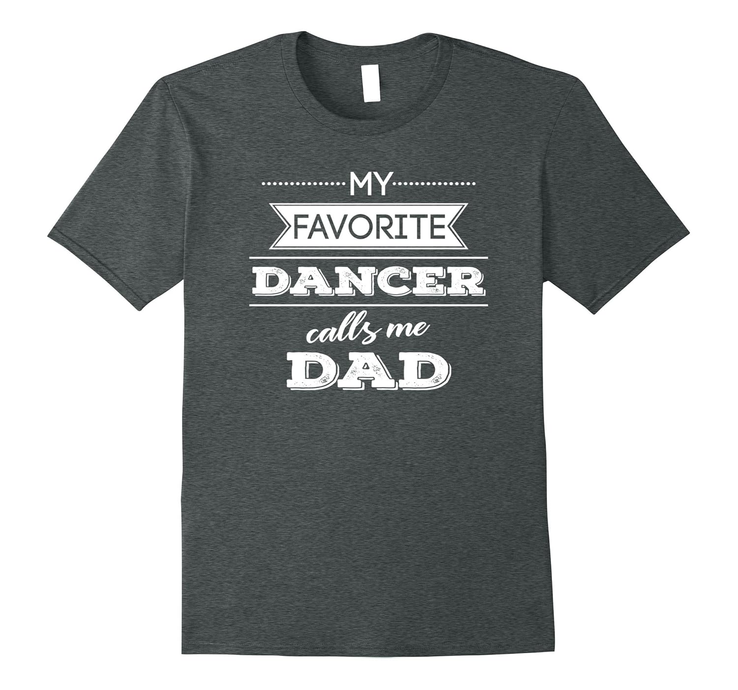 Solid colors: 100% Cotton; Heather Grey: 90% Cotton, 10% Polyester; All Other Heathers: 50% Cotton, 50% Polyester; Imported; Machine wash cold with like colors, dry low heat; This tee shirt reads: My favorite dancer calls me dad. This is the perfect shirt for a dad of a dancer (hip hop, jazz, ballet, etc) who is the number 1 fan of his athlete. Makes a great gift.; This tee shirt is for the best father in the world who loves to cheer on and support his dancing son or daughter. Great for the daddy of a ballerina, ballroom, jazz, tap, lyrical, or any other type of dancer.; Lightweight, Classic fit, Double-needle sleeve and bottom hem