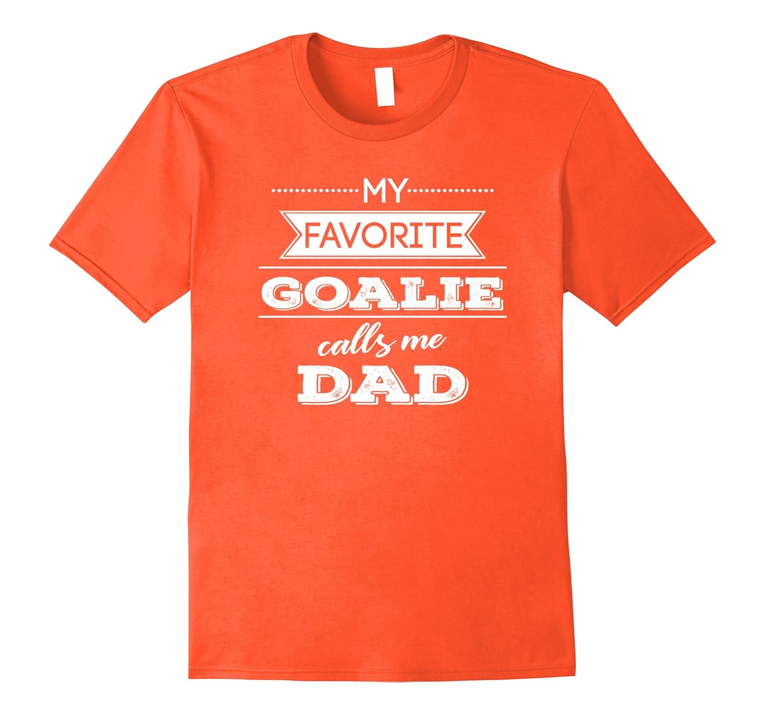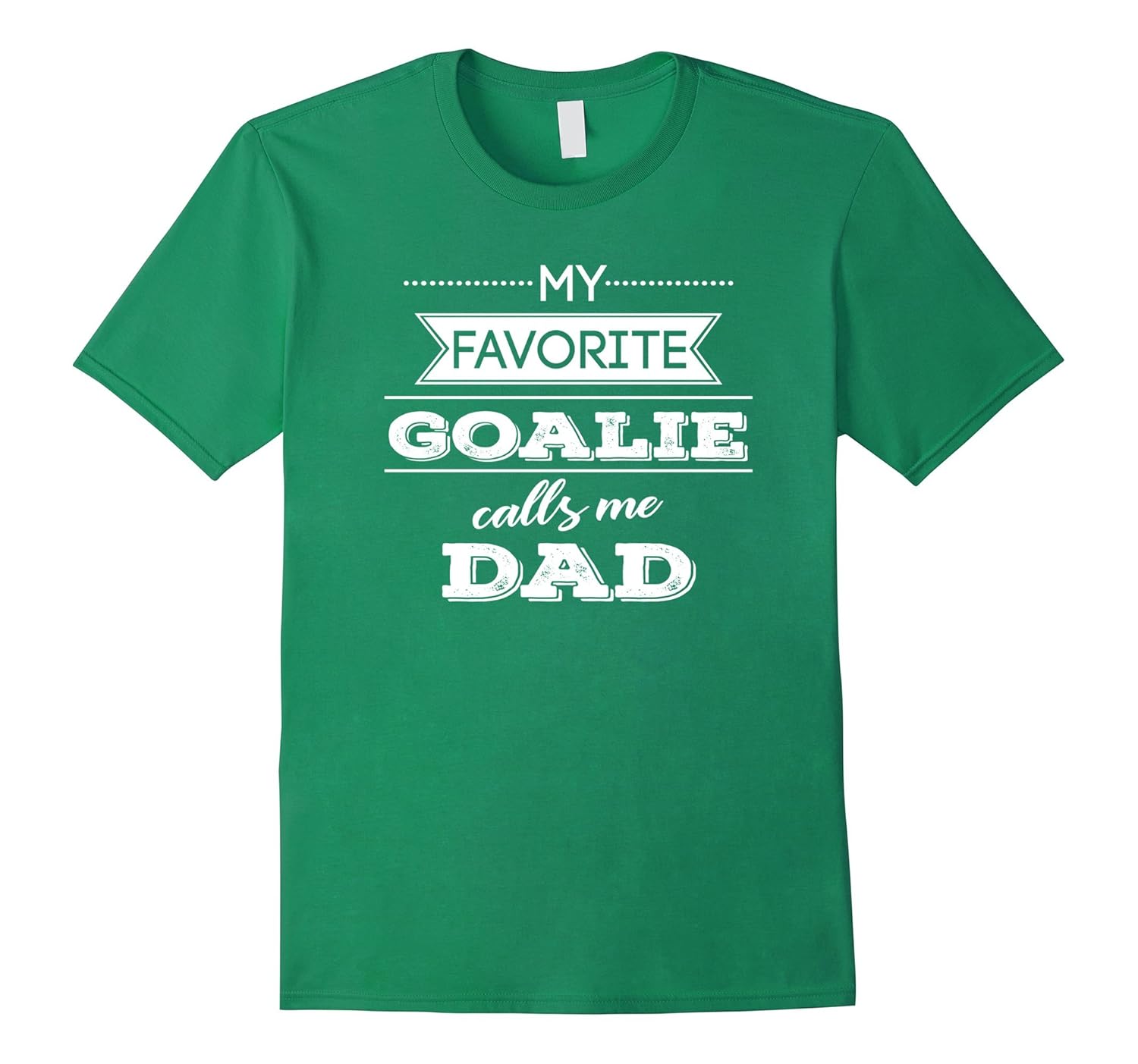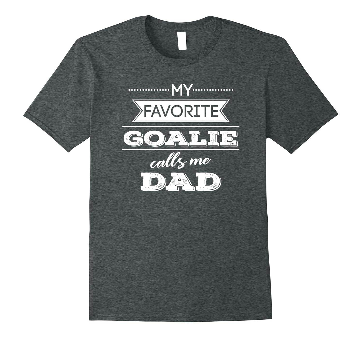 Solid colors: 100% Cotton; Heather Grey: 90% Cotton, 10% Polyester; All Other Heathers: 50% Cotton, 50% Polyester; Imported; Machine wash cold with like colors, dry low heat; This tee shirt reads: My favorite goalie calls me dad. This is the perfect shirt for a father of a goalie who plays field hockey, ice hockey, soccer, water polo etc. For a dad who is the number 1 fan of his athlete. Makes a great gift.; This tee shirt has a modern, tighter fit. For a loose-fitting shirt, order a size up. Available in sizes for men, women, and kids. Mens sizes are unisex tee shirts and include some plus sizes.; Lightweight, Classic fit, Double-needle sleeve and bottom hem