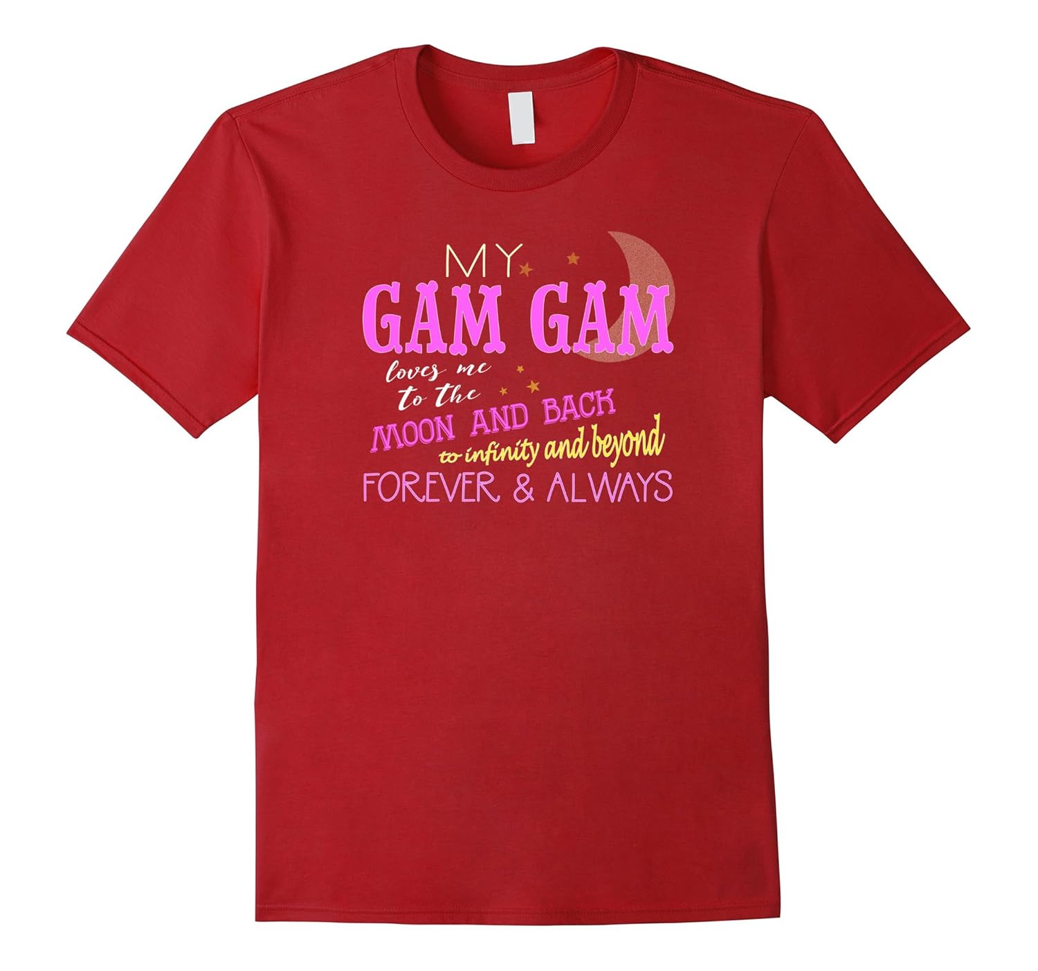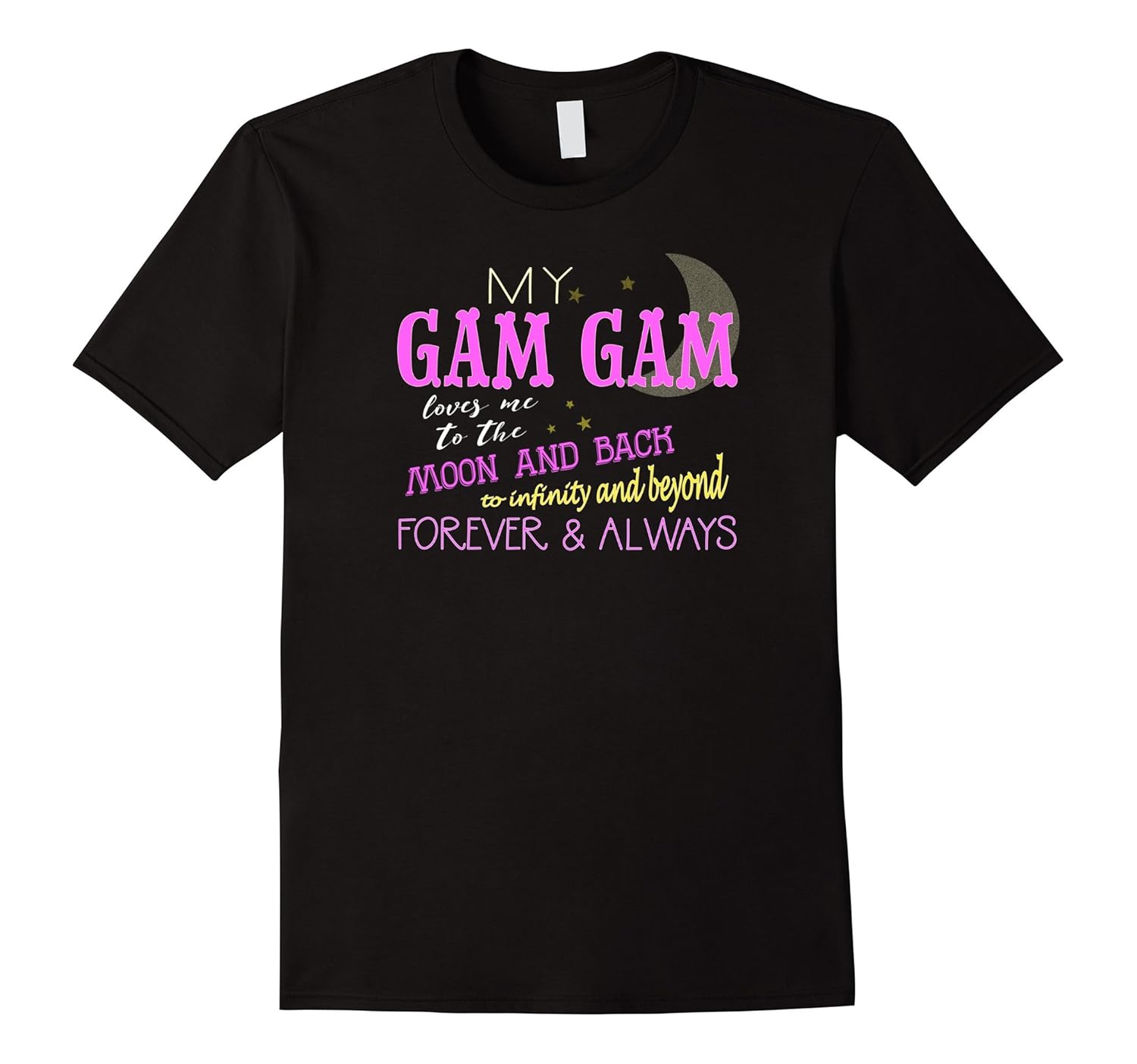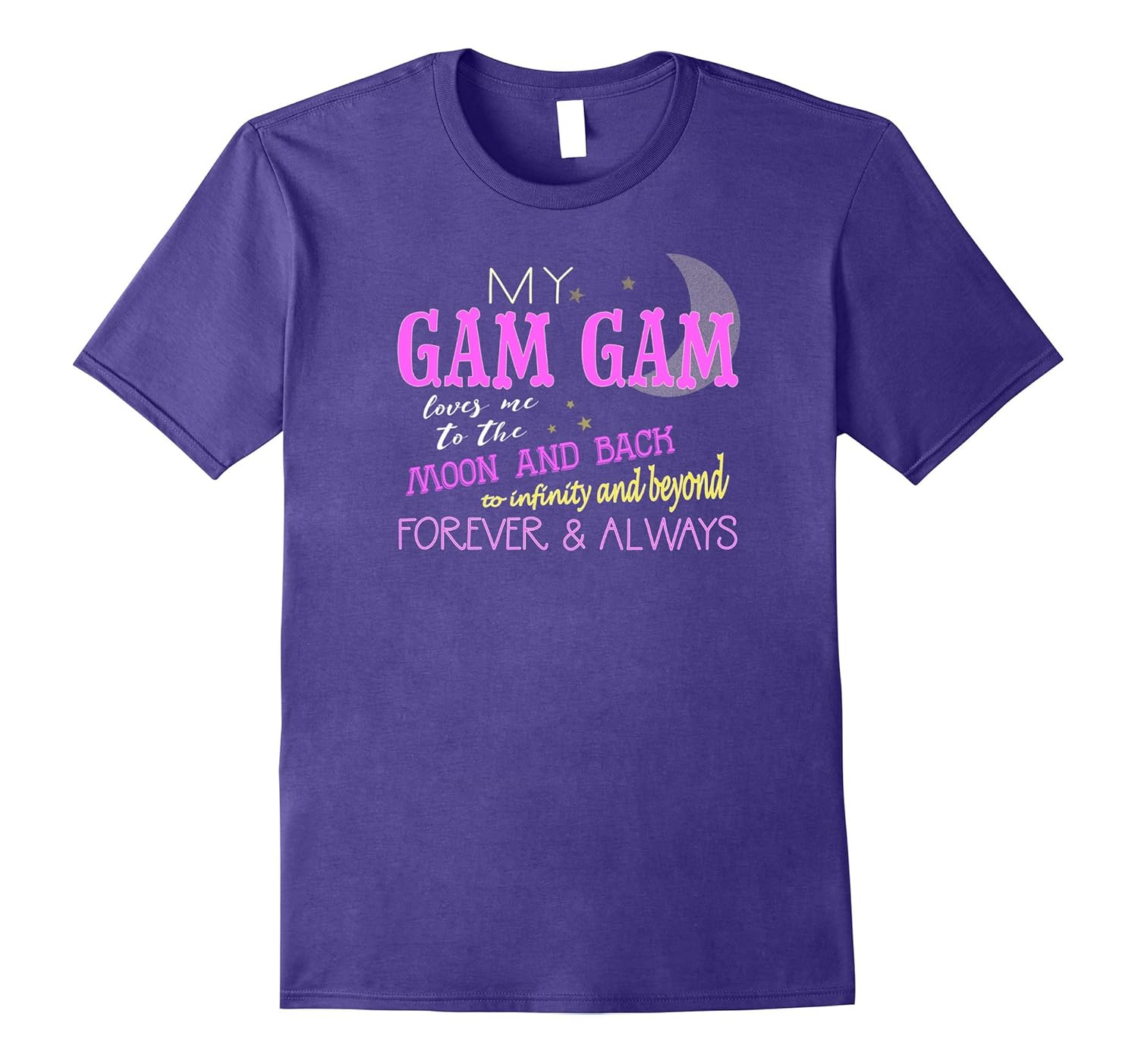 Solid colors: 100% Cotton; Heather Grey: 90% Cotton, 10% Polyester; All Other Heathers: 50% Cotton, 50% Polyester; Imported; Machine wash cold with like colors, dry low heat; My gam gam loves me to the moon and back, to infinity and beyond, forever Andamp; always. This grandparent themed shirt is the perfect gift idea for your favorite person, your grandchild.; Grandparents who love their grandchildren (grandson, granddaughter, grandkids, etc.) are sure to enjoy this tee shirt. Super fun apparel with cool sayings, funny graphics, and sporty themes.; Lightweight, Classic fit, Double-needle sleeve and bottom hem