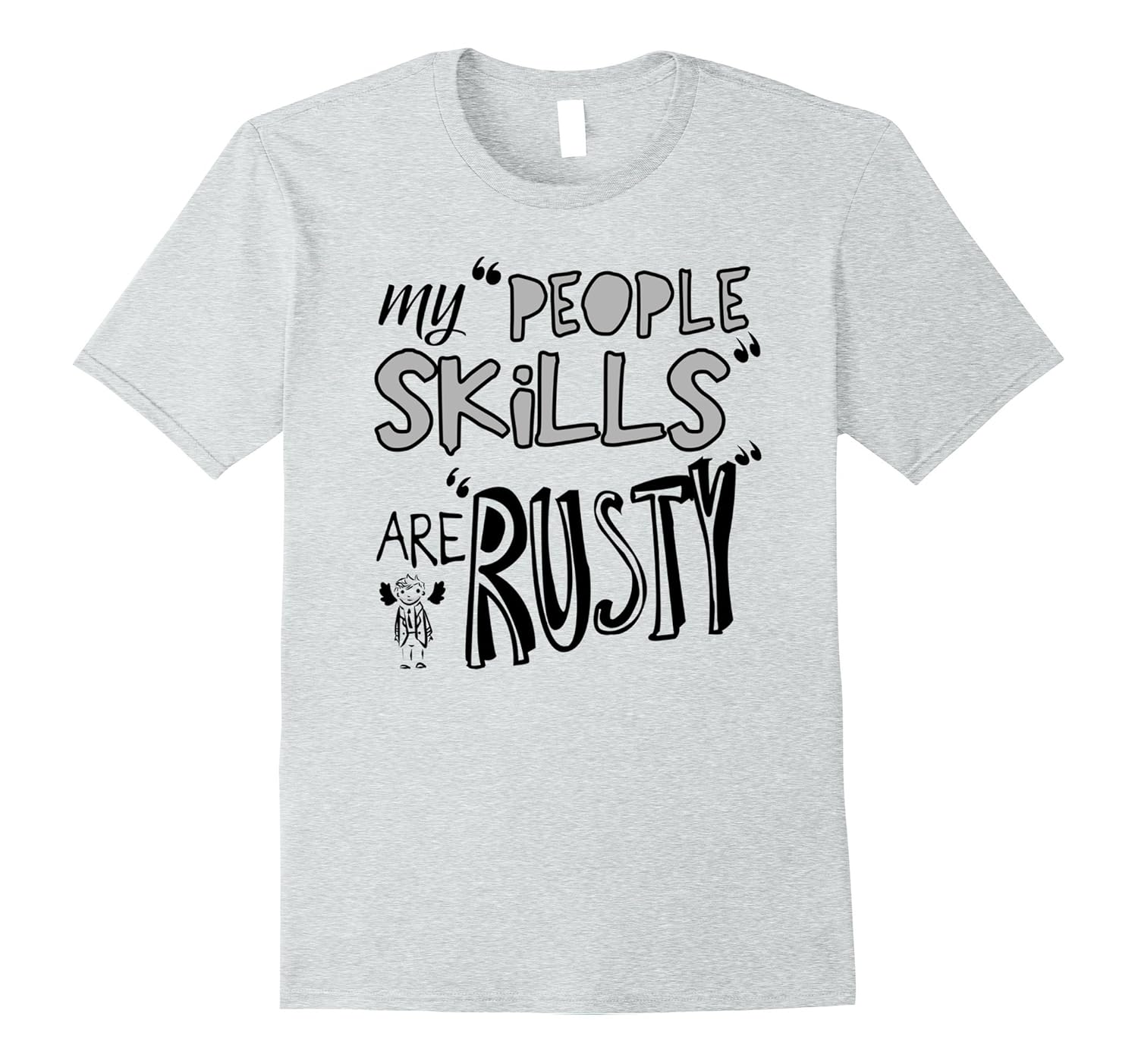 Solid colors: 100% Cotton; Heather Grey: 90% Cotton, 10% Polyester; All Other Heathers: 65% Cotton, 35% Polyester, Imported, Machine wash cold with like colors, dry low heat, My People Skills Are Rusty T-shirt, Lightweight, Classic fit, Double-needle sleeve and bottom hem