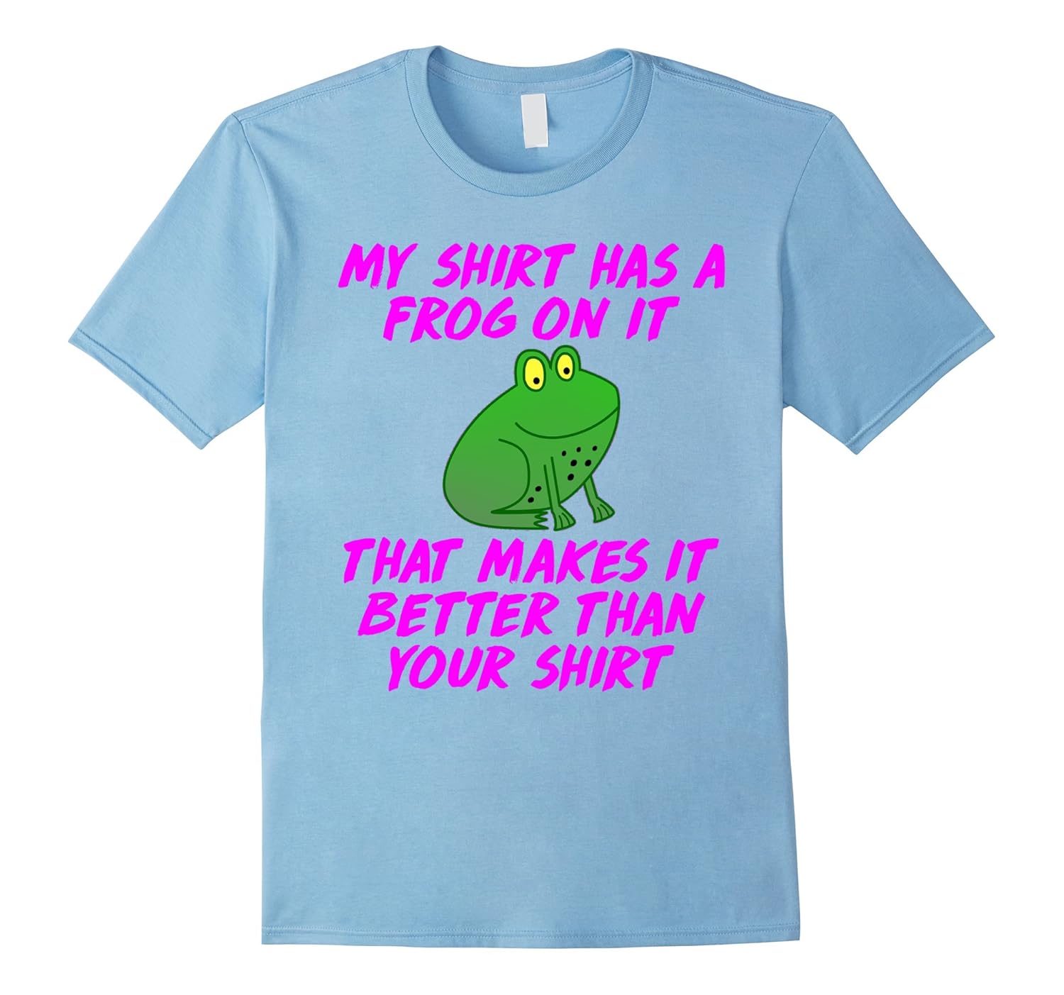 Solid colors: 100% Cotton; Heather Grey: 90% Cotton, 10% Polyester; All Other Heathers: 65% Cotton, 35% Polyester, Imported, Machine wash cold with like colors, dry low heat, My Shirt Has A Frog On It That Makes It Better Than T-shirt is a great t-shirt gift idea for her, for him, for a friend, sister, brother, mom, dad, grandmother, grandfather or anyone special in your life who loves frogs!, If its your birthday or someone who is having a birthday then this officially funny frog t-shirt for you. Lightweight, Classic fit, Double-needle sleeve and bottom hem