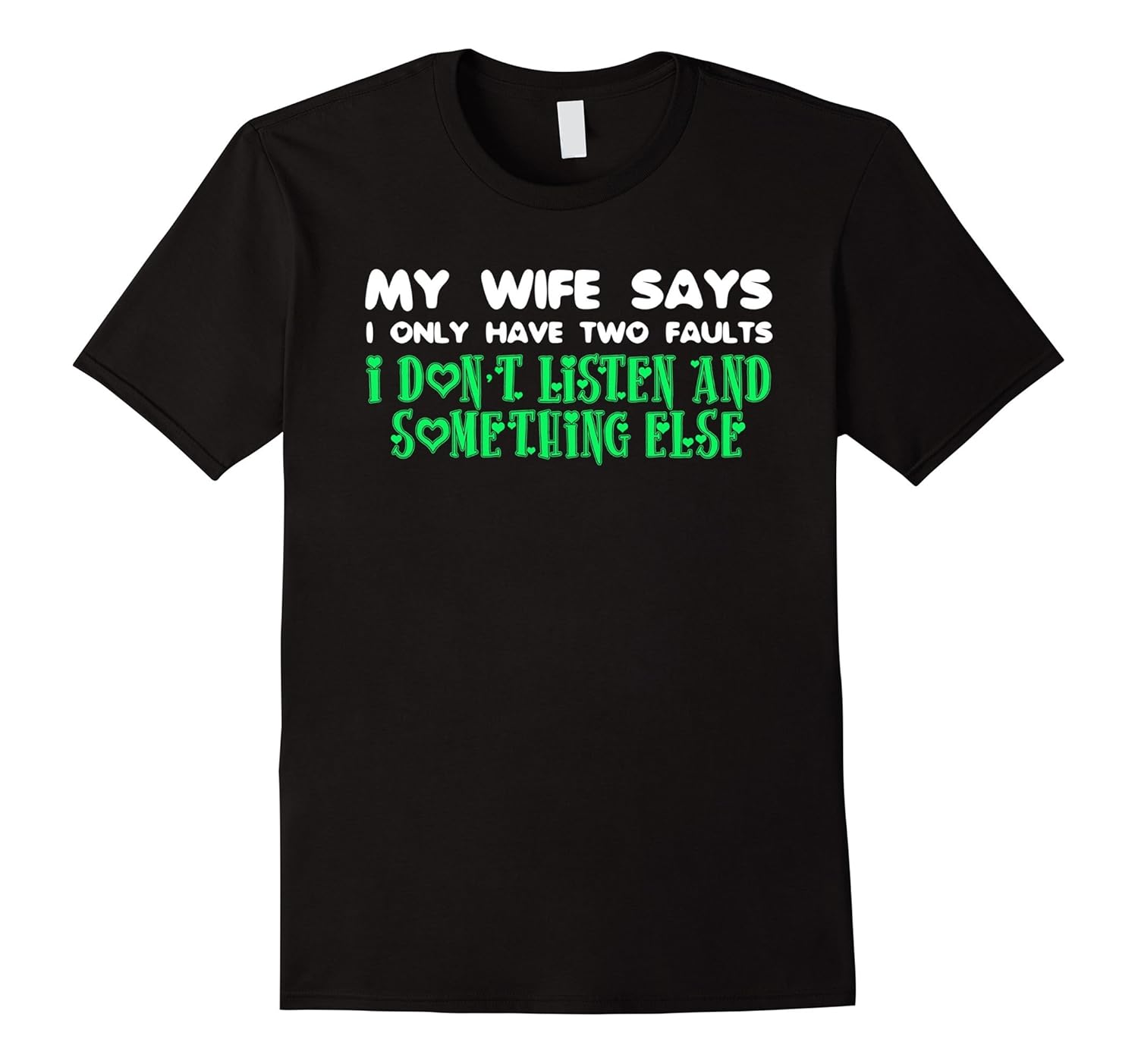 Solid colors: 100% Cotton; Heather Grey: 90% Cotton, 10% Polyester; All Other Heathers: 65% Cotton, 35% Polyester, Imported, Machine wash cold with like colors, dry low heat, My wife says I only have two faults funny tshirt, My wife says I only have two faults I dont listen and something else shirt for your wife in Halloween, Christmas Holiday… Lightweight, Classic fit, Double-needle sleeve and bottom hem