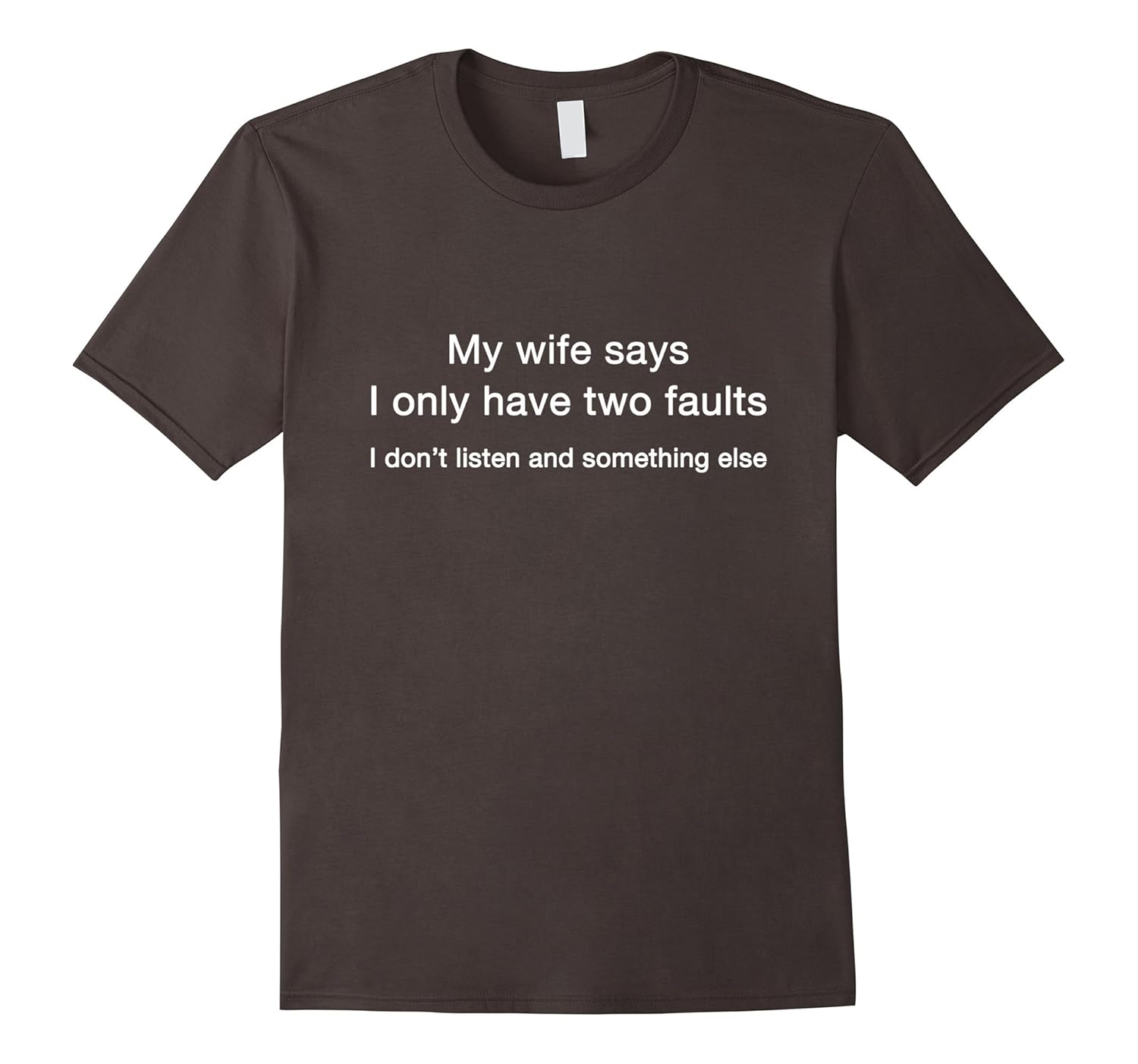 Solid colors: 100% Cotton; Heather Grey: 90% Cotton, 10% Polyester; All Other Heathers: 65% Cotton, 35% Polyester; Imported; Machine wash cold with like colors, dry low heat; My Wife Says I Only Have Two Faults I Dont listen and Something Else T-Shirt; Funny Family Shirt, Funny Wife Shirt, Funny Husband Shirt; Lightweight, Classic fit, Double-needle sleeve and bottom hem