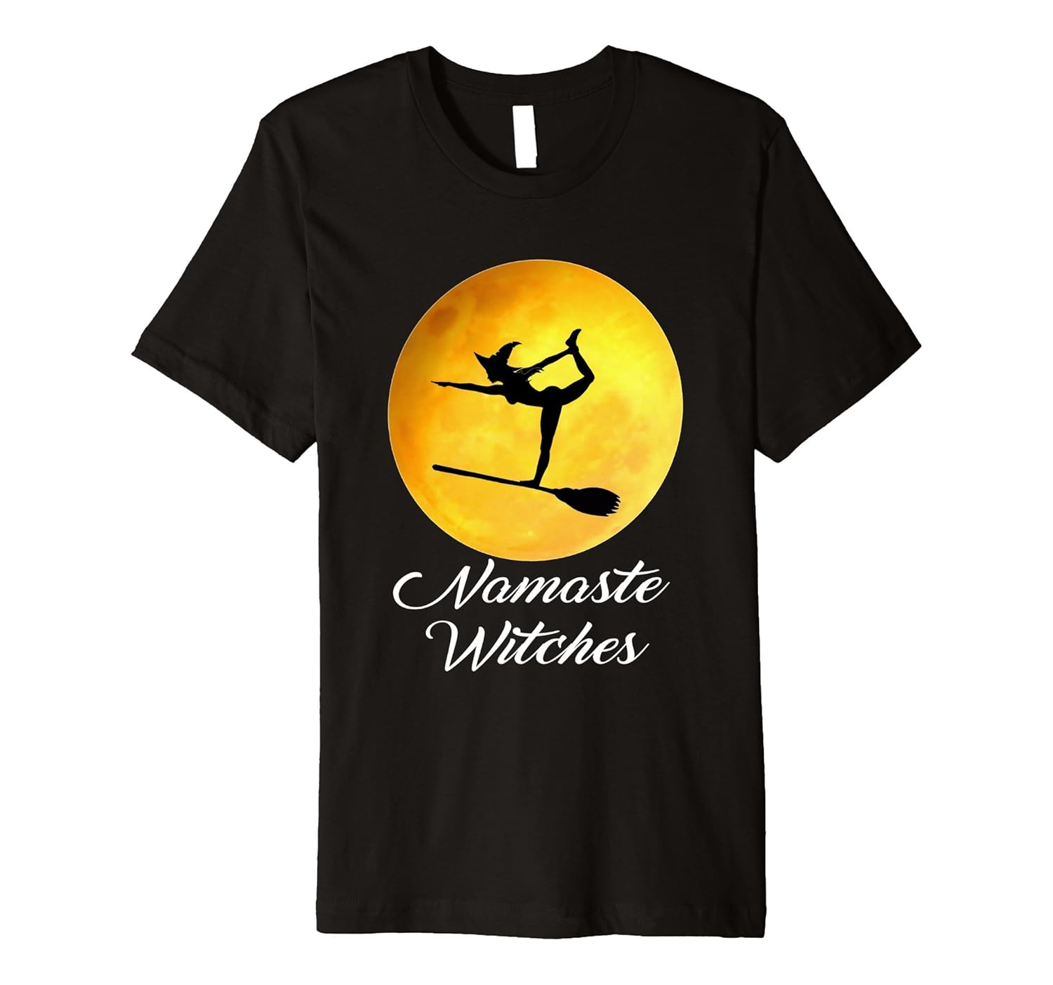 Solid colors: 100% Cotton; Heather Grey: 90% Cotton, 10% Polyester; All Other Heathers: 58% Cotton, 42% Polyester; Imported; Machine wash cold with like colors, dry low heat; Are you a Yoga lover? This cute Halloween Tee Shirt is the perfect Halloween gift, present or souvenir for friends and family. Great Yoga shirt for ladies, women, girls, mom, grandma, and children for Halloween parties, Pilates and trick or treating!; Fit: Slim (consider ordering a larger size for a looser fit); This Namaste Witches Yoga shirt will have everyone showering you with compliments. Great as a simple cute Halloween costume, the witch practices yoga and meditation on a broom in peace and stylish fashion! This premium shirt is a great tee for birthdays!; This premium t-shirt is made of lightweight fine jersey fabric