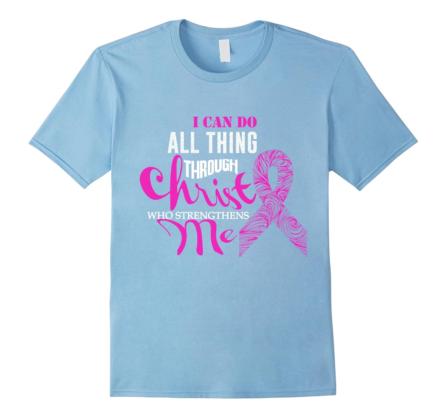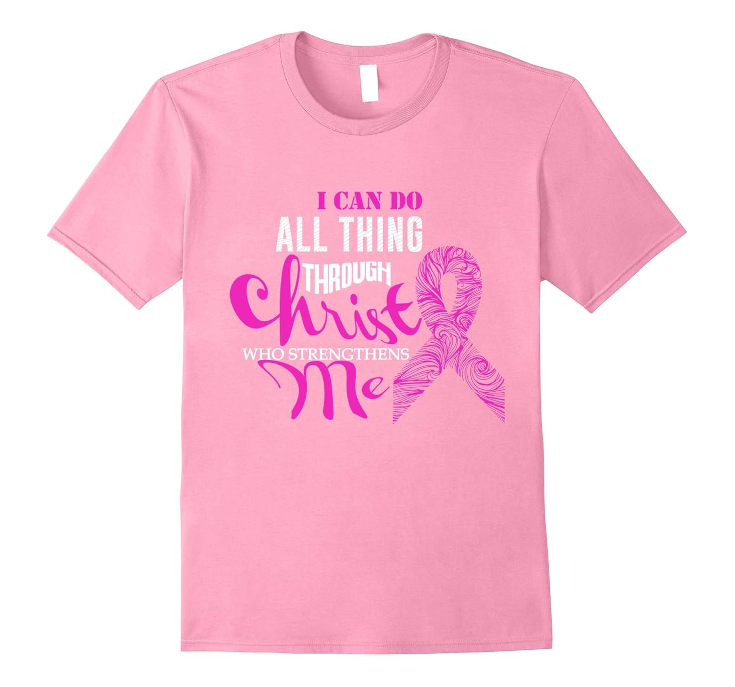 Solid colors: 100% Cotton; Heather Grey: 90% Cotton, 10% Polyester; All Other Heathers: 65% Cotton, 35% Polyester, Imported, Machine wash cold with like colors, dry low heat, National Breast Cancer Day Tshirt I can do all thing through Christ who strengthens me, National Breast Cancer Day Tshirt awaereness, believe hope pray cure, Lightweight, Classic fit, Double-needle sleeve and bottom hem