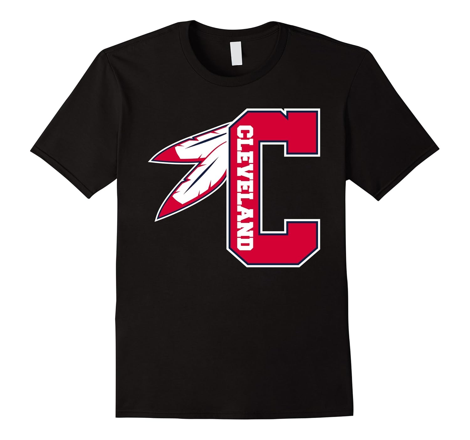 Solid colors: 100% Cotton; Heather Grey: 90% Cotton, 10% Polyester; All Other Heathers: 65% Cotton, 35% Polyester, Imported, Machine wash cold with like colors, dry low heat, This Cleveland shirt features a distressed illustrated native american feather headpiece in the city of C of Cleveland, Ohio flag colors. Great CLE tshirt. An an awesome shirt for anyone in Cuyahoga county to look at the Cleveland skyline. Order your these Cuyahoga Cleveland Ohio shirts a size up for a looser fit. Great Christmas or birthday gift for any Ohioan or a native in a local hometown Ohio Indian Tribe. Lightweight, Classic fit, Double-needle sleeve and bottom hem