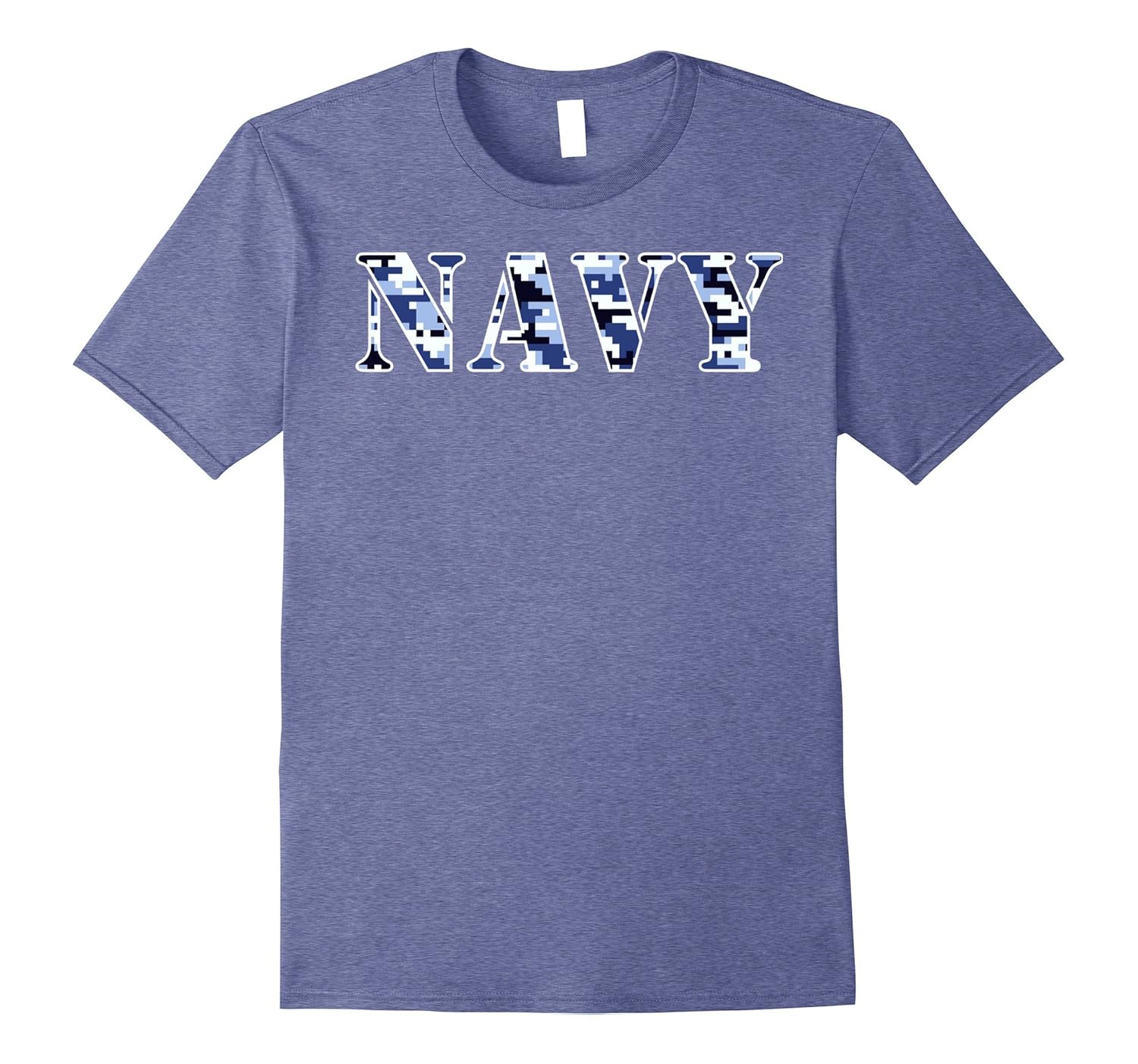 Solid colors: 100% Cotton; Heather Grey: 90% Cotton, 10% Polyester; All Other Heathers: 65% Cotton, 35% Polyester, Imported, Machine wash cold with like colors, dry low heat, Perfect for navy sailors, enlisted, officer and more. Great gift or last minute, easy Halloween costume. T-shirt says “NAVY” in a military stencil font in a blue digital camouflage pattern. For looser fit, order one size larger. Lightweight, Classic fit, Double-needle sleeve and bottom hem