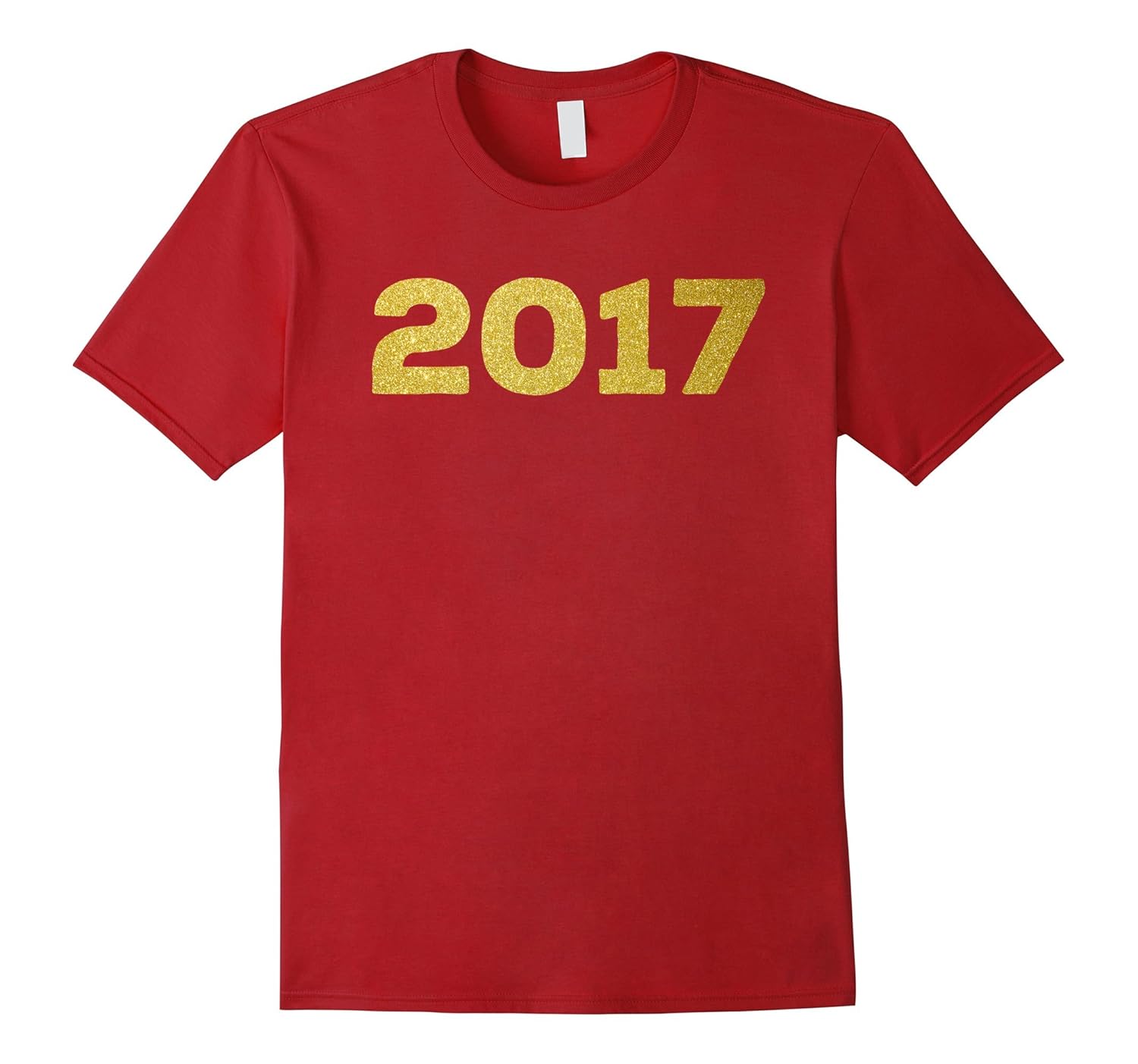 100% Cotton; Imported; Machine wash cold with like colors, dry low heat; This New Year 2017 shirt is designed in modern typography with a gold look print.; Ring in the new year with this stylish t-shirt. Perfect for your new years eve party and every day.; Lightweight, Classic fit, Double-needle sleeve and bottom hem