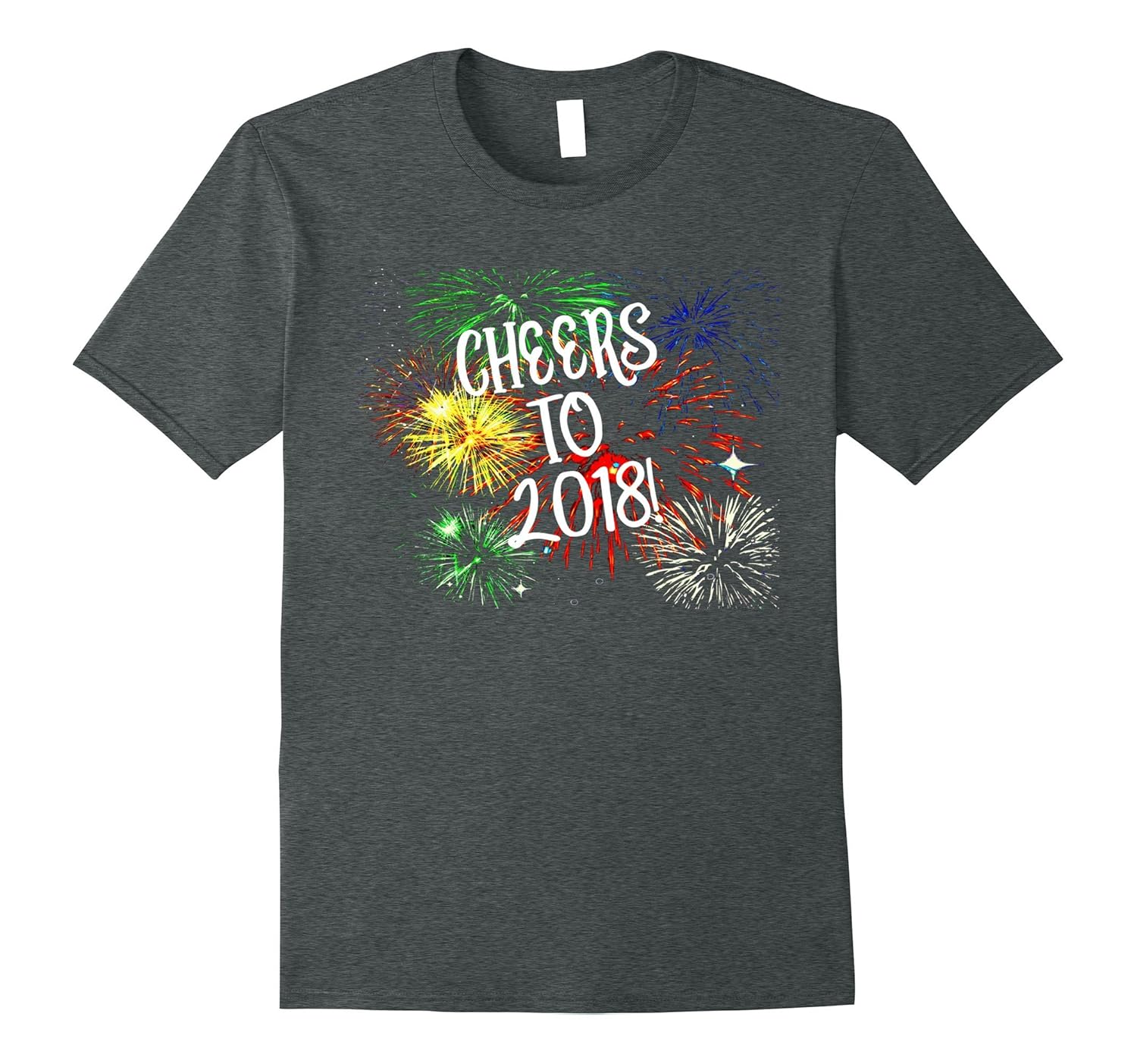 Solid colors: 100% Cotton; Heather Grey: 90% Cotton, 10% Polyester; All Other Heathers: 65% Cotton, 35% Polyester; Imported; Machine wash cold with like colors, dry low heat; Wear this cute shirt for all your New Years celebrations! Cheers to 2018!; This shirt is a great way to show off your fun side at a NYE party!; Lightweight, Classic fit, Double-needle sleeve and bottom hem