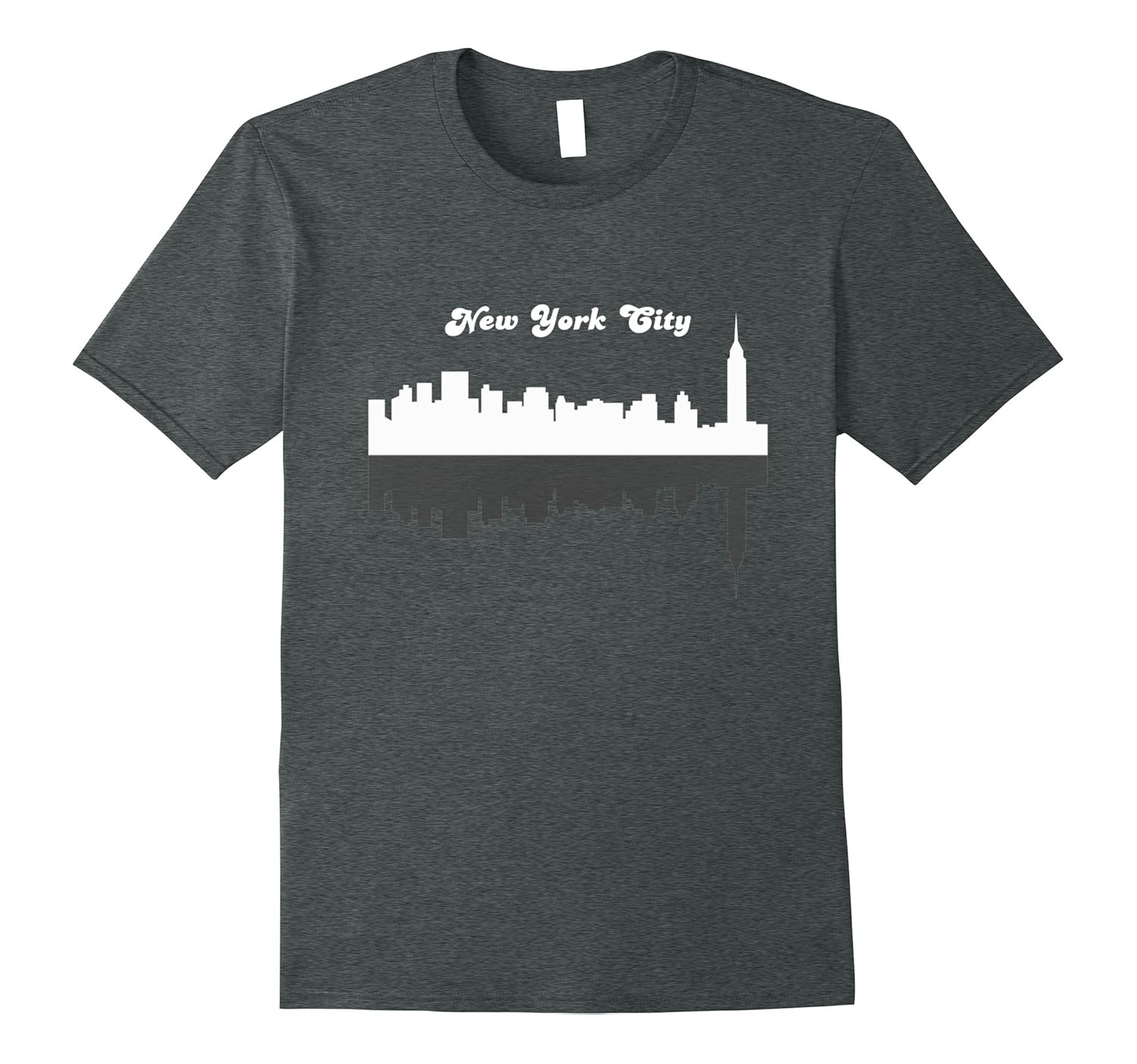 Solid colors: 100% Cotton; Heather Grey: 90% Cotton, 10% Polyester; All Other Heathers: 65% Cotton, 35% Polyester, Imported, Machine wash cold with like colors, dry low heat, Silhouette of New York city skyline in white with a gray reflection in front for the fans of New York. Official colorsanddesigns New York City Skyline Silhouette Cityscape T-shirt for self or for the residents and fans of New York City. Lightweight, Classic fit, Double-needle sleeve and bottom hem