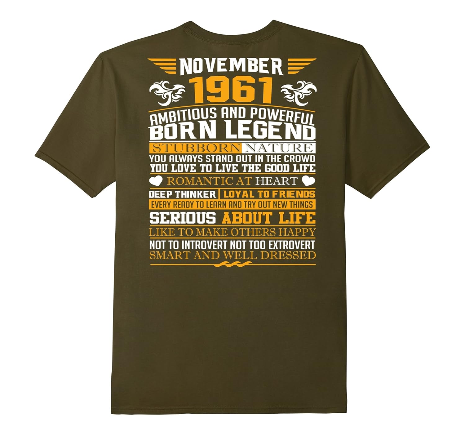 Solid colors: 100% Cotton; Heather Grey: 90% Cotton, 10% Polyester; All Other Heathers: 65% Cotton, 35% Polyester, Imported, Machine wash cold with like colors, dry low heat, Born in November 1961 Shirts, November 1961 Birhtday gift, November 1961, November 1961 T Shirts, Legends born November 1961, Kings born November 1961, Queens born November 1961, Born November 1961 Facts, Birthday shirts, birthday gift, born shirts, birth shirts, t shirts for men, t shirts for women, November 1961 t shirts, Lightweight, Classic fit, Double-needle sleeve and bottom hem