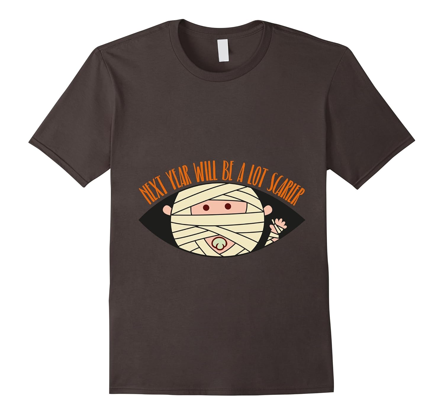 Solid colors: 100% Cotton; Heather Grey: 90% Cotton, 10% Polyester; All Other Heathers: 65% Cotton, 35% Polyester, Imported, Machine wash cold with like colors, dry low heat, This cute and fun Halloween pregnancy tee would be a great way to announce a new arrival this holiday season. Note that this is a regular-fit tee, so order sizes up accordingly. Spook, scare and celebrate in this “next year will be a lot scarier” tee. Our “next year will be a lot scarier” tee is perfect for parents-to-be. It”s designed to be fitted so please order a size up for a baggier style. Lightweight, Classic fit, Double-needle sleeve and bottom hem