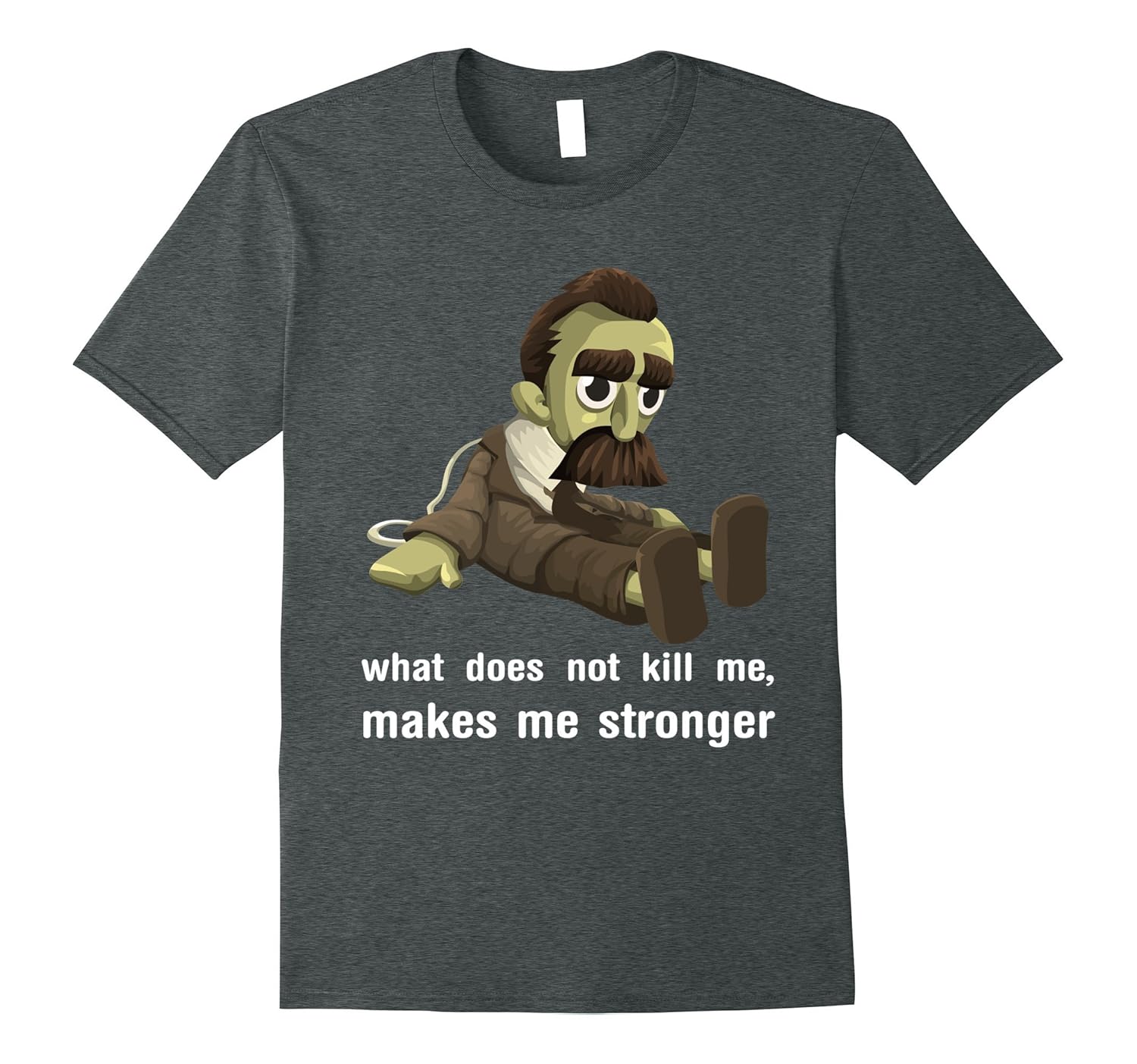 Solid colors: 100% Cotton; Heather Grey: 90% Cotton, 10% Polyester; All Other Heathers: 65% Cotton, 35% Polyester, Imported, Machine wash cold with like colors, dry low heat, Nietzsche Voodoo Doll T-Shirt, featuring a cool graphic of Friedrich Nietzsche as a voodoo doll, with the text of his famous quote: “What does not kill me, makes me stronger”, Friedrich Nietzsche was a German philosopher whose work has exerted a profound influence on Western philosophy and modern intellectual history, Lightweight, Classic fit, Double-needle sleeve and bottom hem