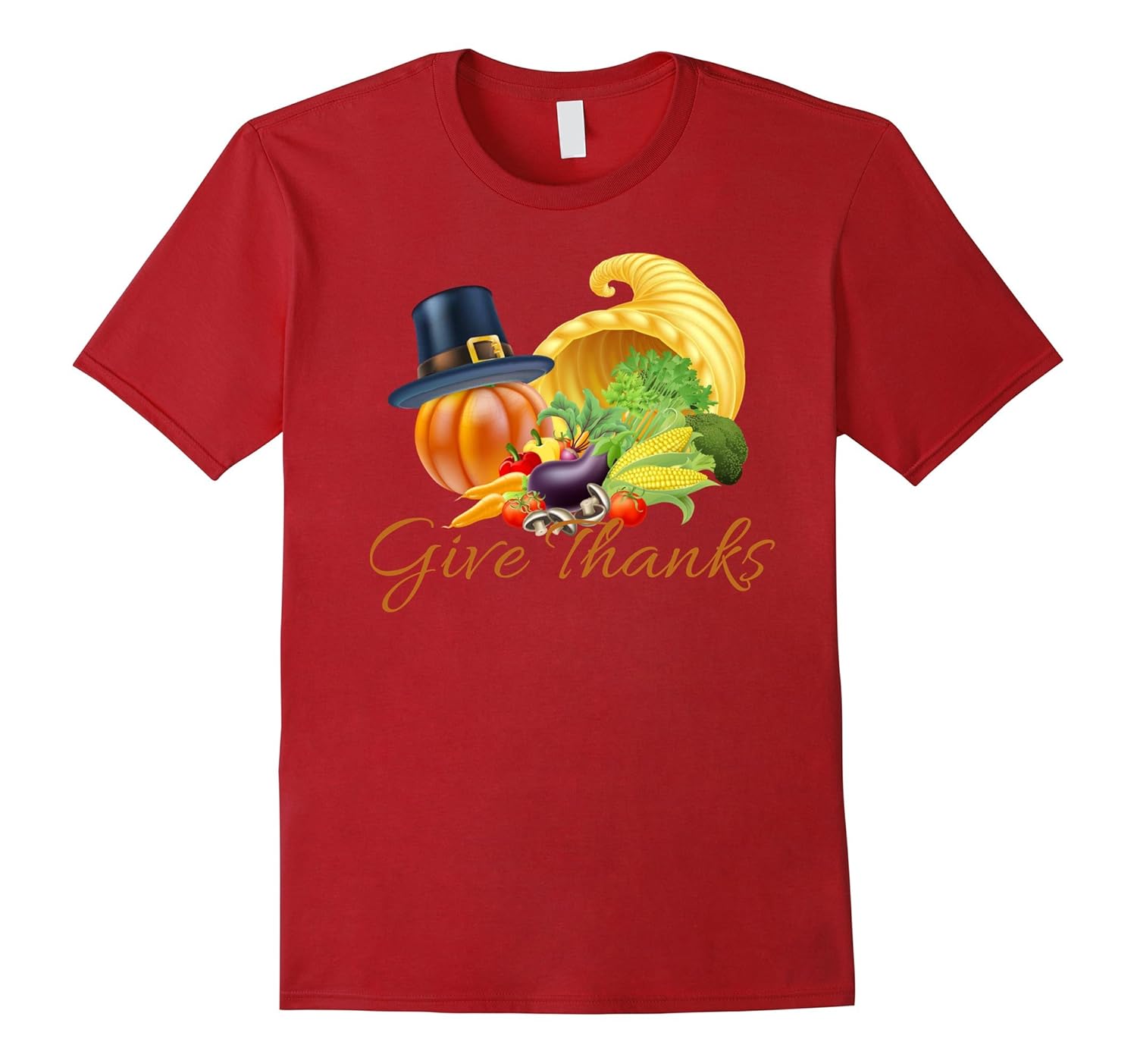 “Give Thanks” Autumn Harvest Cornucopia Thanksgiving T-Shirt-ANZ