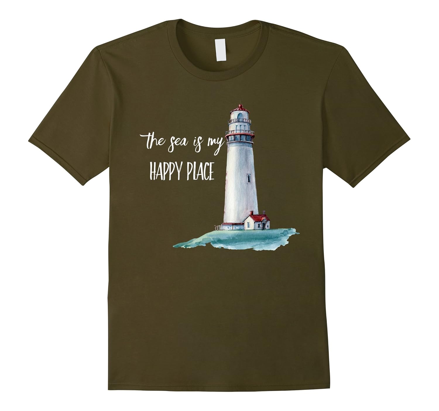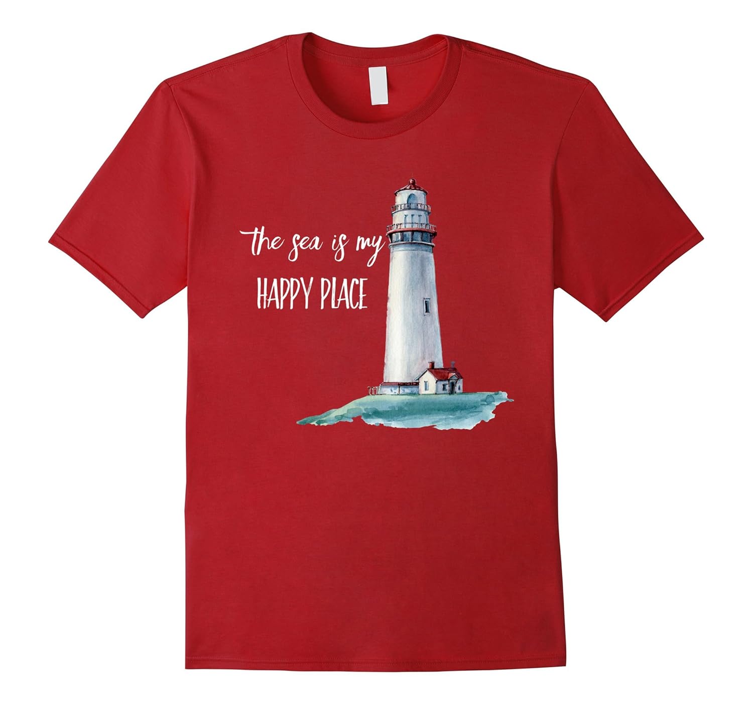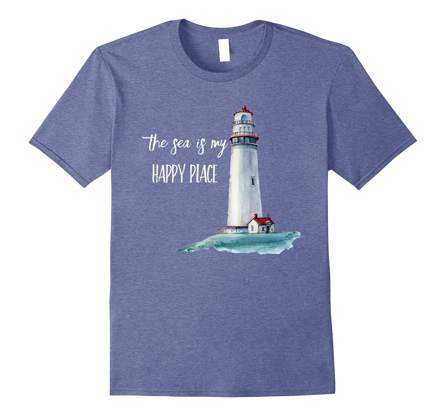 Solid colors: 100% Cotton; Heather Grey: 90% Cotton, 10% Polyester; All Other Heathers: 65% Cotton, 35% Polyester, Imported, Machine wash cold with like colors, dry low heat, summer vacation, the sea is my happy place, beach, ocean, lighthouse, This shirt is perfect for those who love the sea. This comfortable tshirt would be perfect to wear while you are out visiting the place you love most. Wear this to the sea. Lightweight, Classic fit, Double-needle sleeve and bottom hem