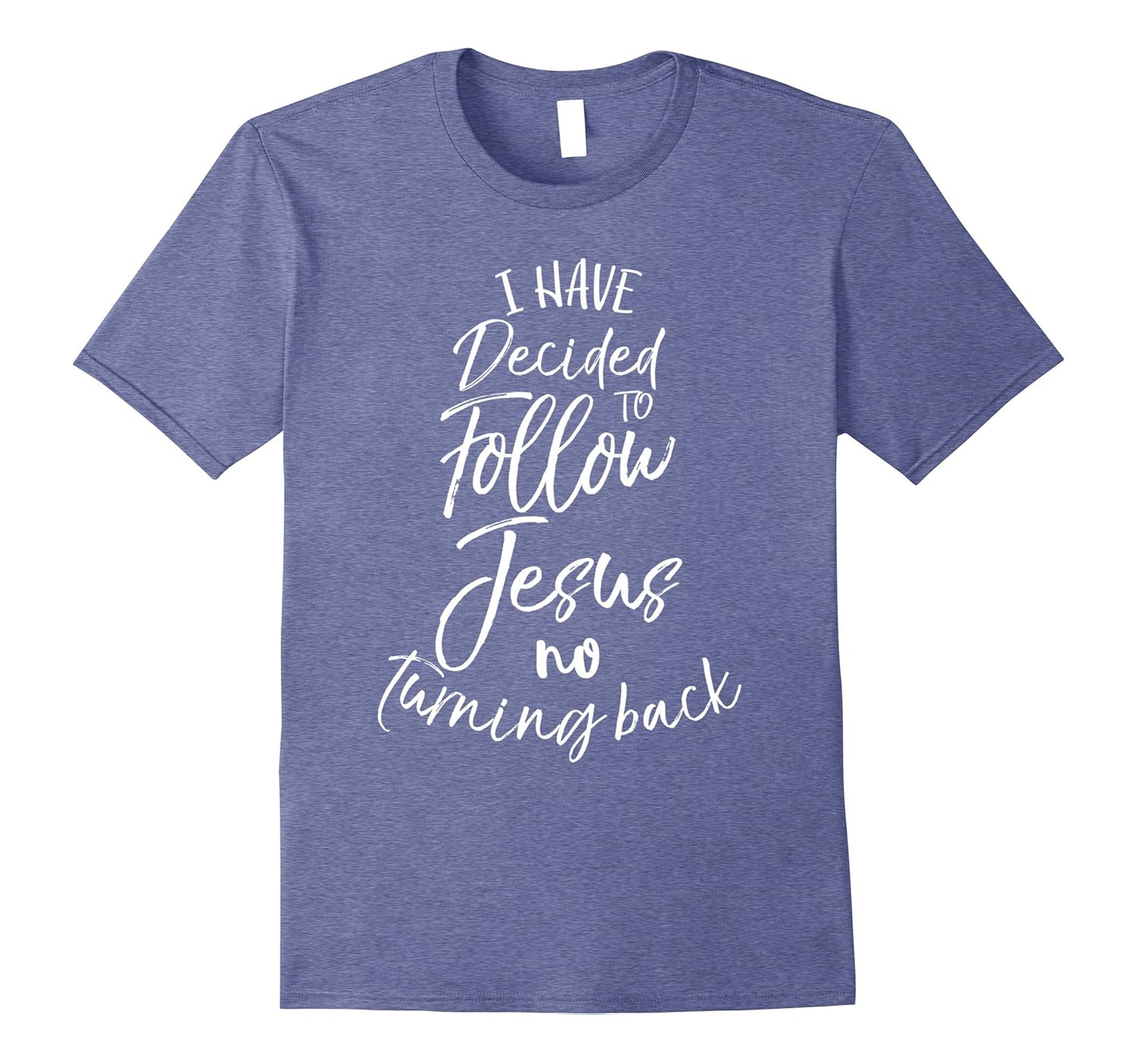Solid colors: 100% Cotton; Heather Grey: 90% Cotton, 10% Polyester; All Other Heathers: 65% Cotton, 35% Polyester, Imported, Machine wash cold with like colors, dry low heat, I have decided to follow Jesus no turning back inspirational Christian T-shirt. Christian Scripture tee shows you”ve chosen to obey and; pursue Jesus in this Jesus tee. This Bible verse inspired classic line from the great Christian hymn shirt shows faith!, This vintage tee is the perfect baptism gift, show the world your new reality as a follower of Christ. This is a great gift for pastors, missionaries, and worship leaders. Worship Jesus Christ through your clothing in this faith shirt. Men, women”s shirt. Lightweight, Classic fit, Double-needle sleeve and bottom hem
