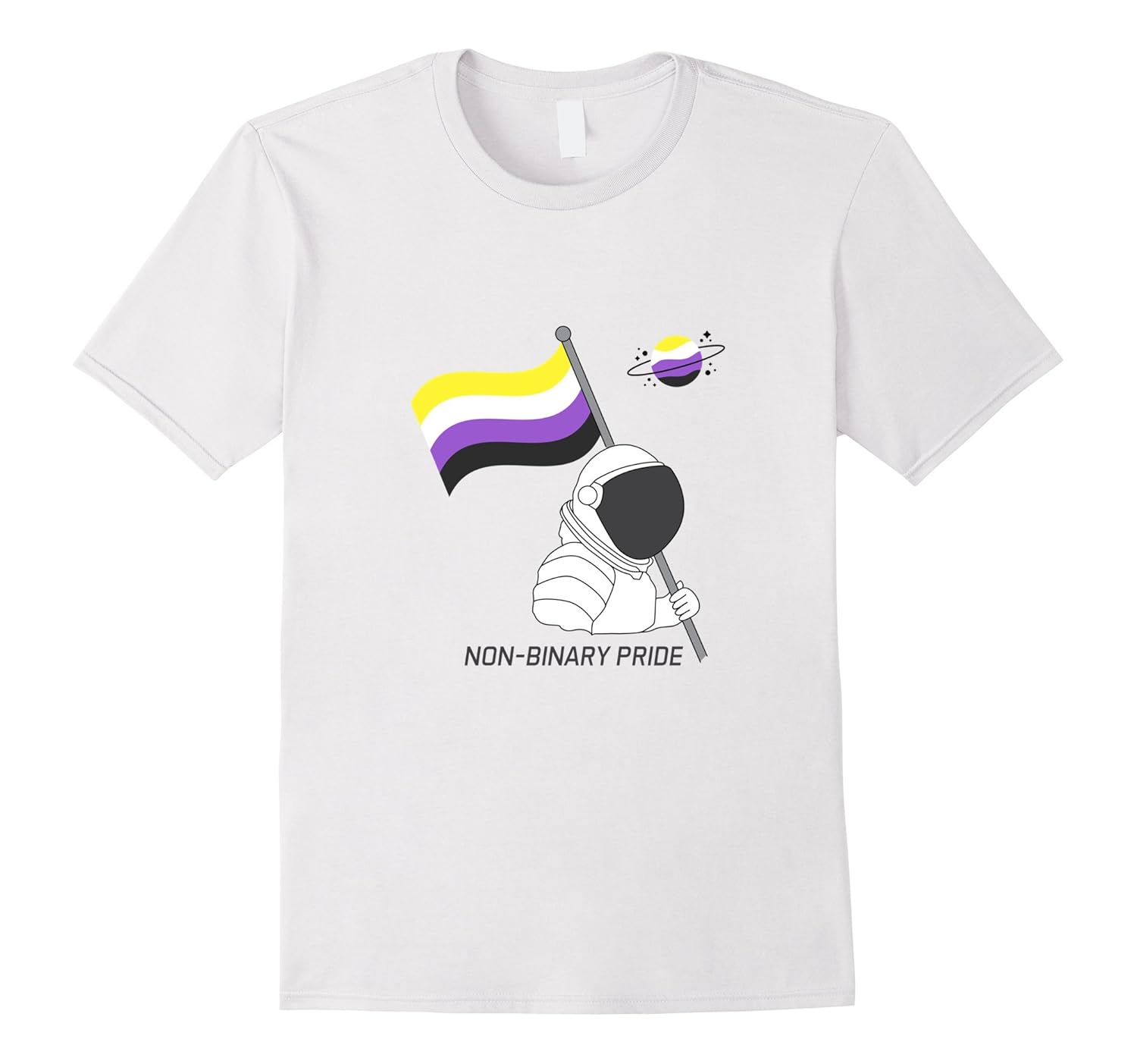 Solid colors: 100% Cotton; Heather Grey: 90% Cotton, 10% Polyester; All Other Heathers: 65% Cotton, 35% Polyester, Imported, Machine wash cold with like colors, dry low heat, Non binary colors, nonbinary flag, nonbinary shirt, Show your non-binary pride, nonbinary astronaut shirt, Lightweight, Classic fit, Double-needle sleeve and bottom hem