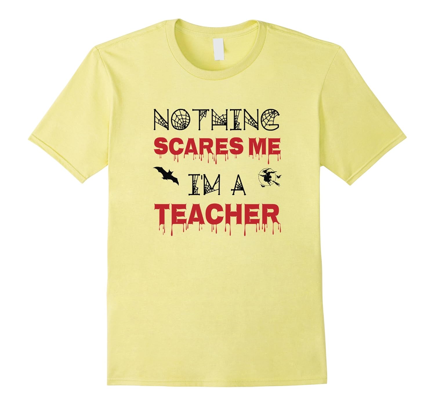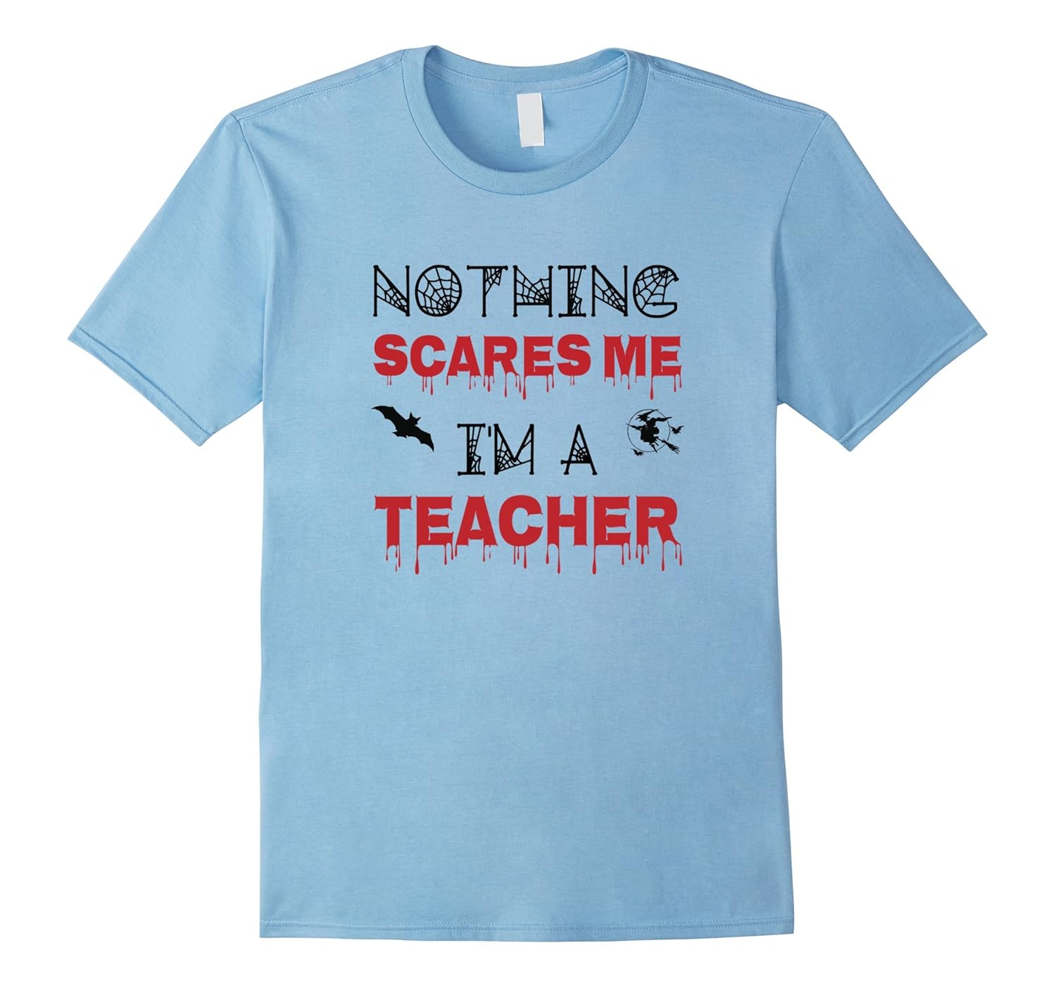 Solid colors: 100% Cotton; Heather Grey: 90% Cotton, 10% Polyester; All Other Heathers: 65% Cotton, 35% Polyester; Imported; Machine wash cold with like colors, dry low heat; Nothing Scares Me Im A Teacher Shirt – Perfect Trick Or Treat costume tshirt for Men or Women. Great addition to holiday wardrobe for brother, sister, son, daughter, father, mother, aunt, uncle, cousin, nephew, niece, friends or family.; Funny Halloween costumes Rock! Buy this cute Halloween tee and complete your collection of accessories for him / her (apparel, bandana, bib, bracelet, costume, socks, decorations, dress, earings, hat, hoodie, pajamas, cap, jacket, sweatshirt, mug); Lightweight, Classic fit, Double-needle sleeve and bottom hem