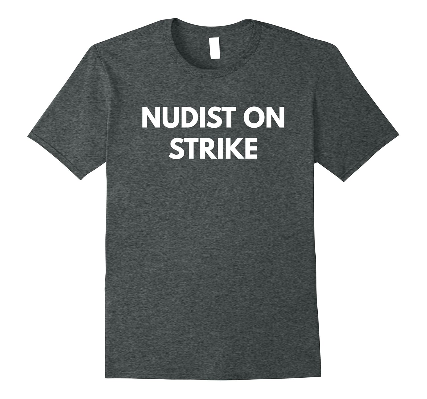 Solid colors: 100% Cotton; Heather Grey: 90% Cotton, 10% Polyester; All Other Heathers: 65% Cotton, 35% Polyester, Imported, Machine wash cold with like colors, dry low heat, Do you love sarcasm. Get your Nudist On Strike t-shirt here. Nudist On Strike t-shirt sizes runs small. We recommend ordering a size up. Please see the sizing chart image for more details. Lightweight, Classic fit, Double-needle sleeve and bottom hem