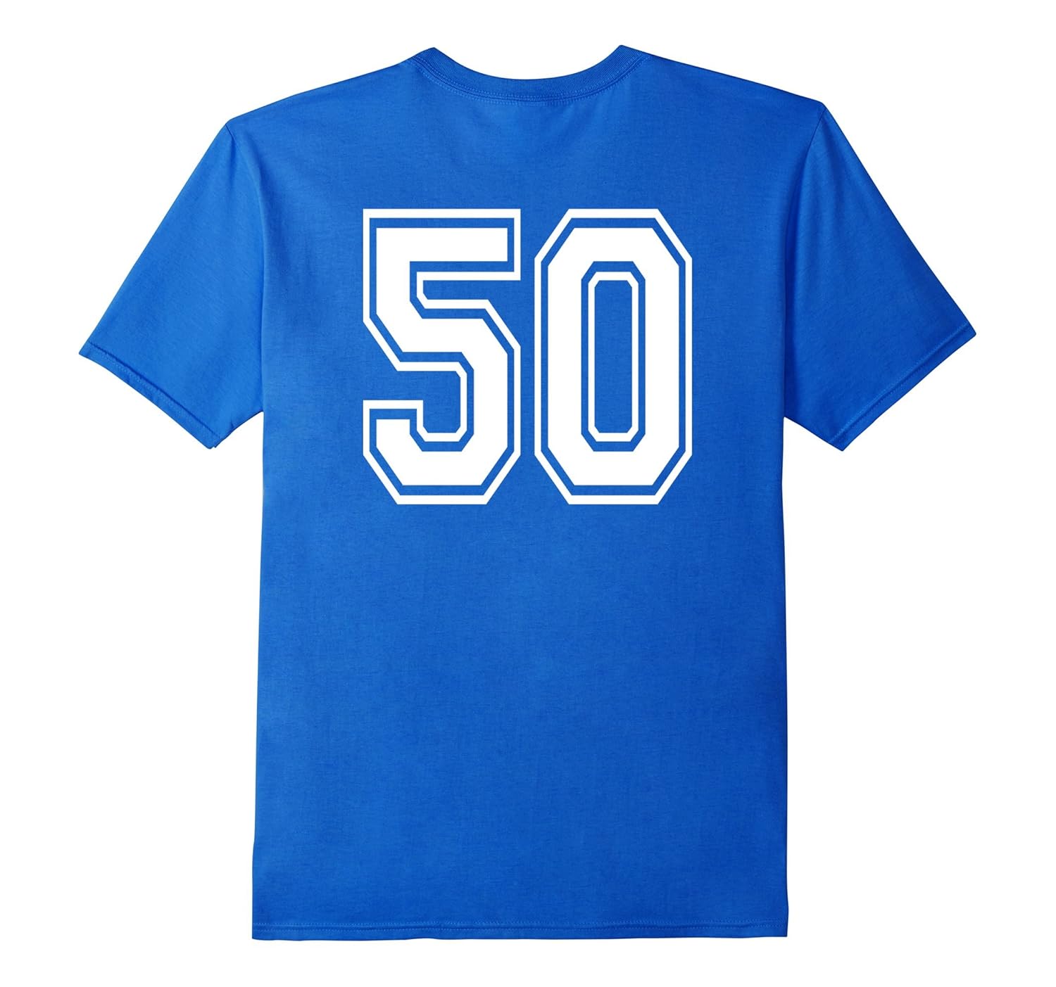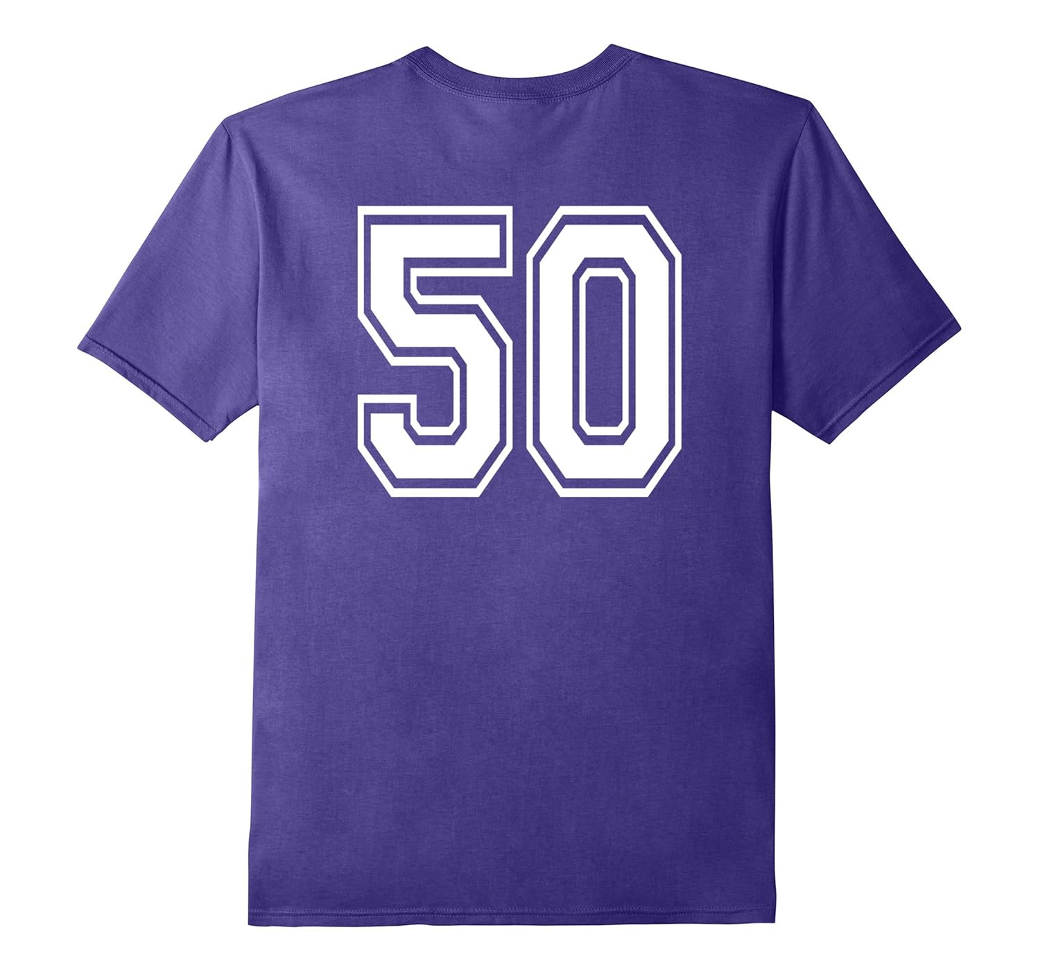 Solid colors: 100% Cotton; Heather Grey: 90% Cotton, 10% Polyester; All Other Heathers: 65% Cotton, 35% Polyester, Imported, Machine wash cold with like colors, dry low heat, Number 50 t-shirt. Number printed on back of shirt only. Varsity style number t shirt for sports teams, games, tournaments, birthday age. Numbered tshirt, jersey number, uniform number, squad number. Lightweight, Classic fit, Double-needle sleeve and bottom hem