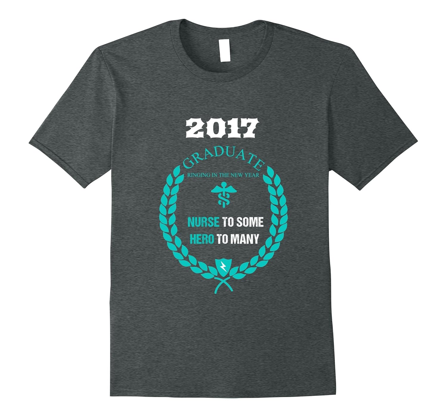 Solid colors: 100% Cotton; Heather Grey: 90% Cotton, 10% Polyester; All Other Heathers: 65% Cotton, 35% Polyester, Imported, Machine wash cold with like colors, dry low heat, This Nursing Graduation Party Gift is the perfect gift for the December Nursing Graduate. It says “2017 Graduate – Ringing In The New Year – Nurse To Some – Hero To Many”, This Nursing Graduation party gift is a perfect way to celebrate the new nurse in your family. Lightweight, Classic fit, Double-needle sleeve and bottom hem