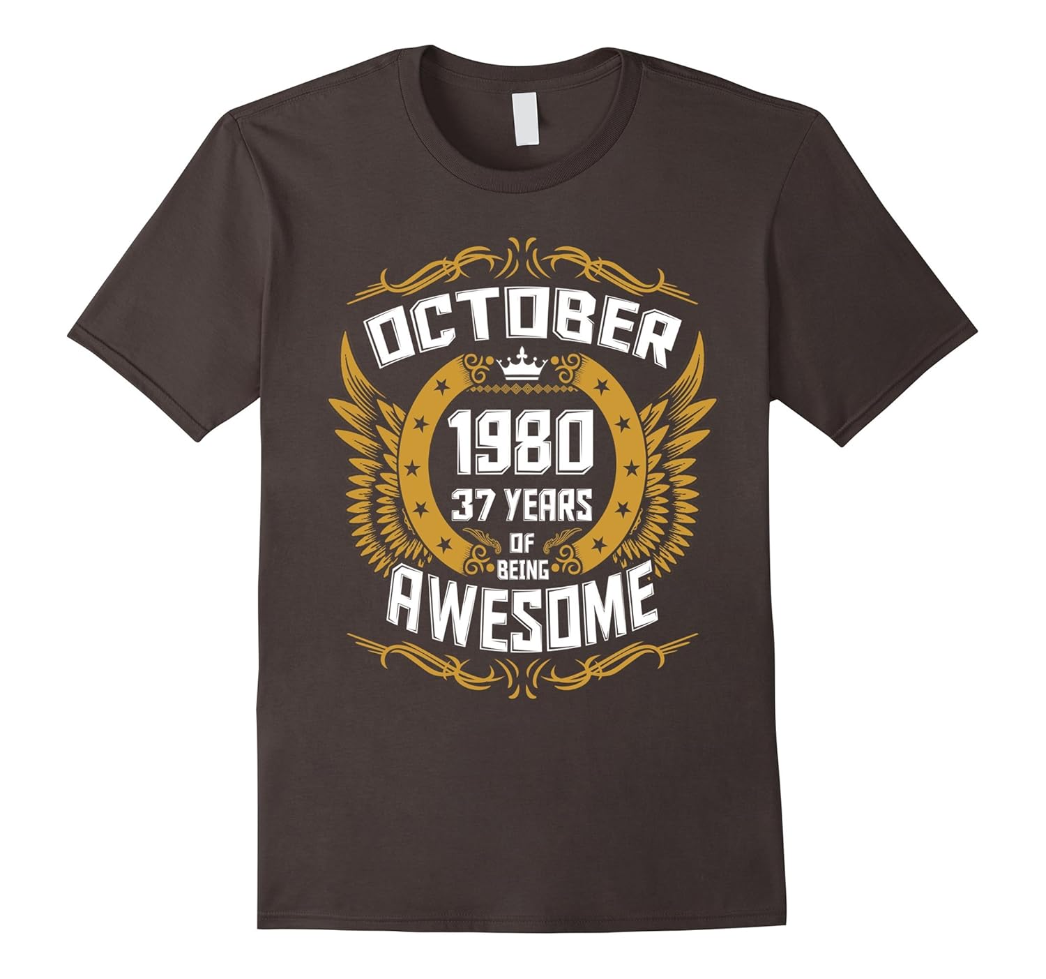 Solid colors: 100% Cotton; Heather Grey: 90% Cotton, 10% Polyester; All Other Heathers: 65% Cotton, 35% Polyester, Imported, Machine wash cold with like colors, dry low heat, This is a great shirt for your 37th birthday, 37 years of being awesome shirt, born in October, born in October 1980, born in October 1980 shirt, October 1980 birthday, t shirt born 1980, 1980 birthday shirt, 1980s girls shirt, 1980s shirts. October birthday shirt, 37th birthday, 37th birthday gifts , 37th birthday gifts for men, 37th birthday t shirts, 37th birthday shirt, 1980 37th birthday shirt, Great 37th birthday gift ideas, 37th birthday party ideas. Lightweight, Classic fit, Double-needle sleeve and bottom hem