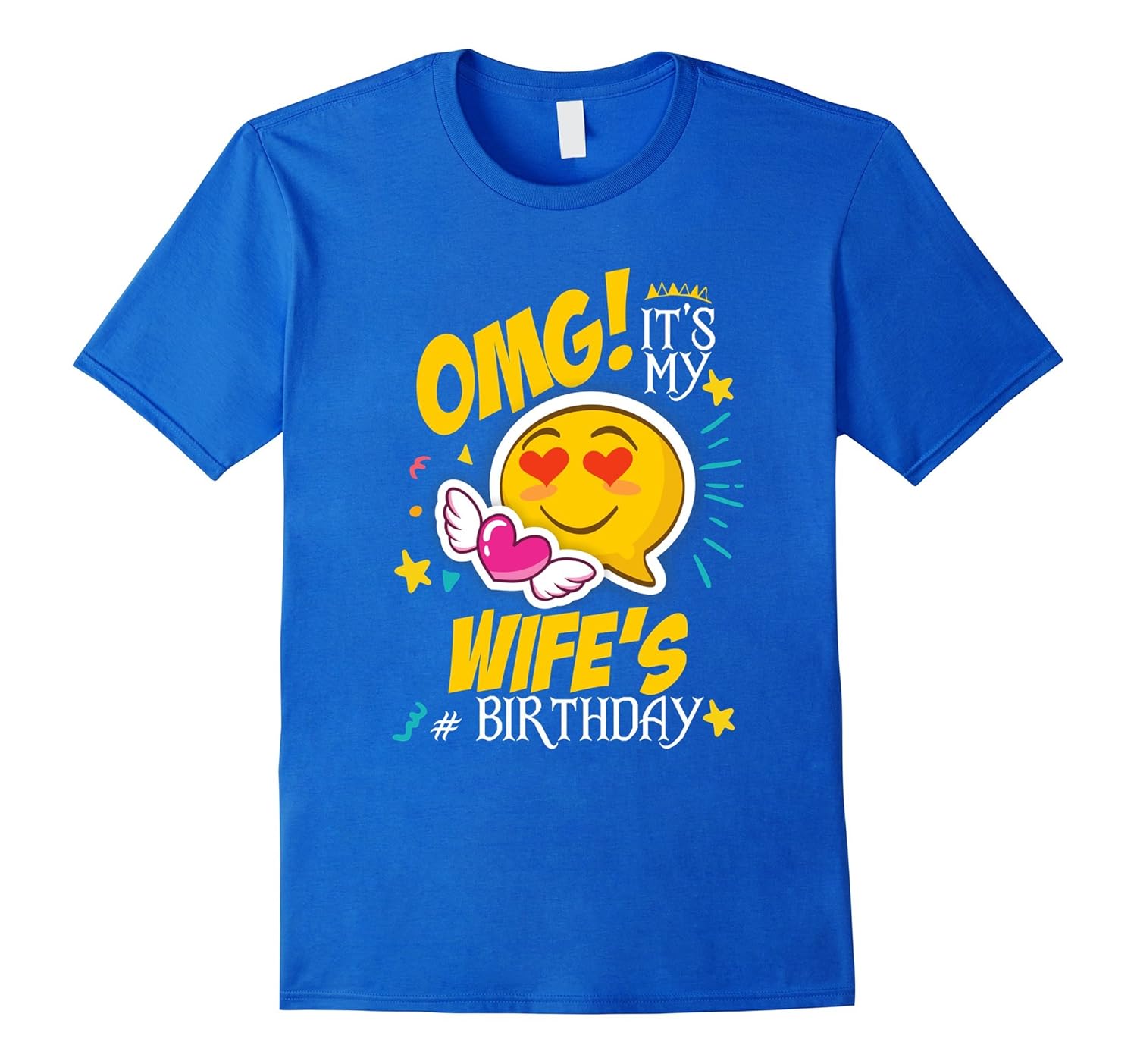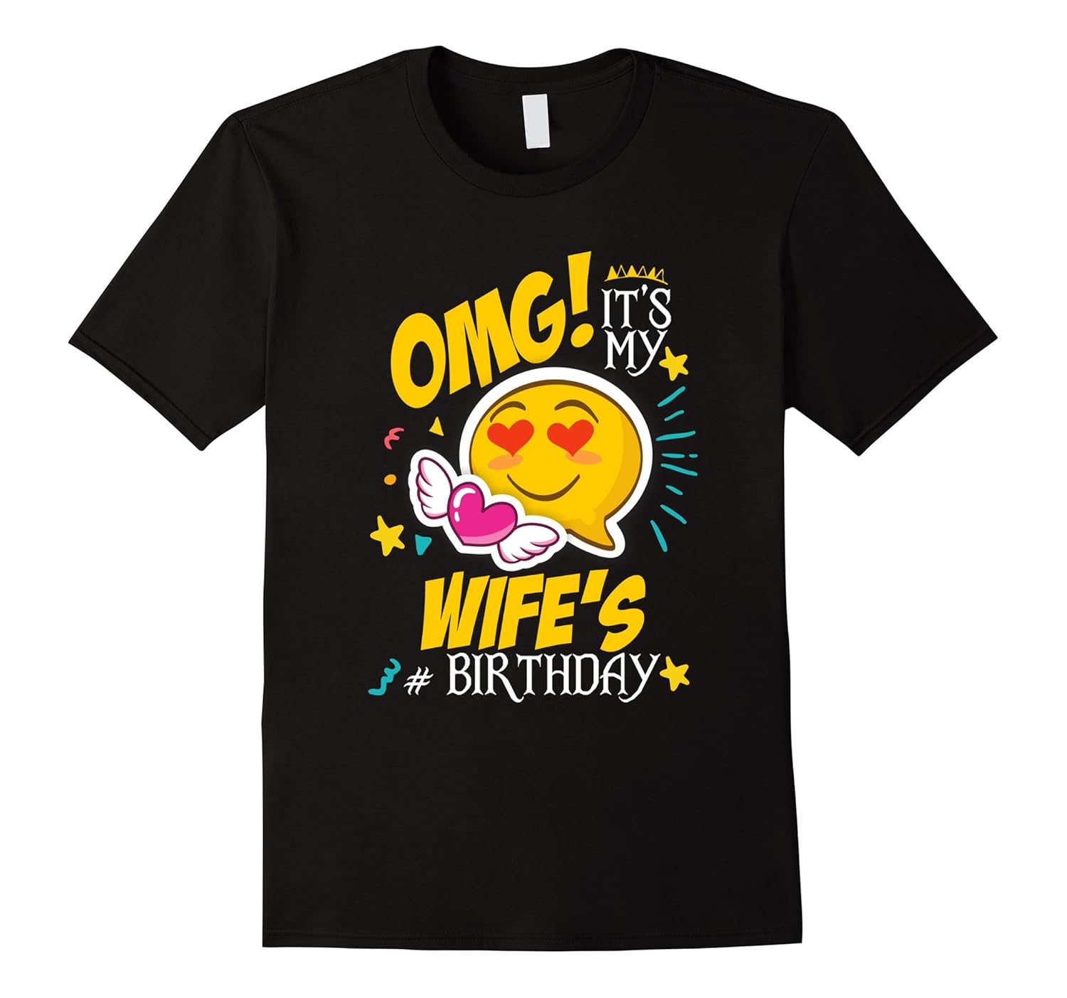 Solid colors: 100% Cotton; Heather Grey: 90% Cotton, 10% Polyester; All Other Heathers: 65% Cotton, 35% Polyester, Imported, Machine wash cold with like colors, dry low heat, An Awesome Birthday T Shirt for Men and Women. Cool looking and Perfect Birthday, Xmas or Thanksgiving T Shirt for your Uncle, Brother, Husband to show love for their Wife or Get for your Hubby. OMG, It”s my Wife”s Birthday. This Emoji T-Shirt can be a Great present for Friends. You can also buy this T Shirt as Thanksgiving Gift or Christmas Present for Friends or Uncle, Brother, Husband. Get this Cool looking and Awesome Birthday T Shirt, Funny Christmas T Shirt. Lightweight, Classic fit, Double-needle sleeve and bottom hem