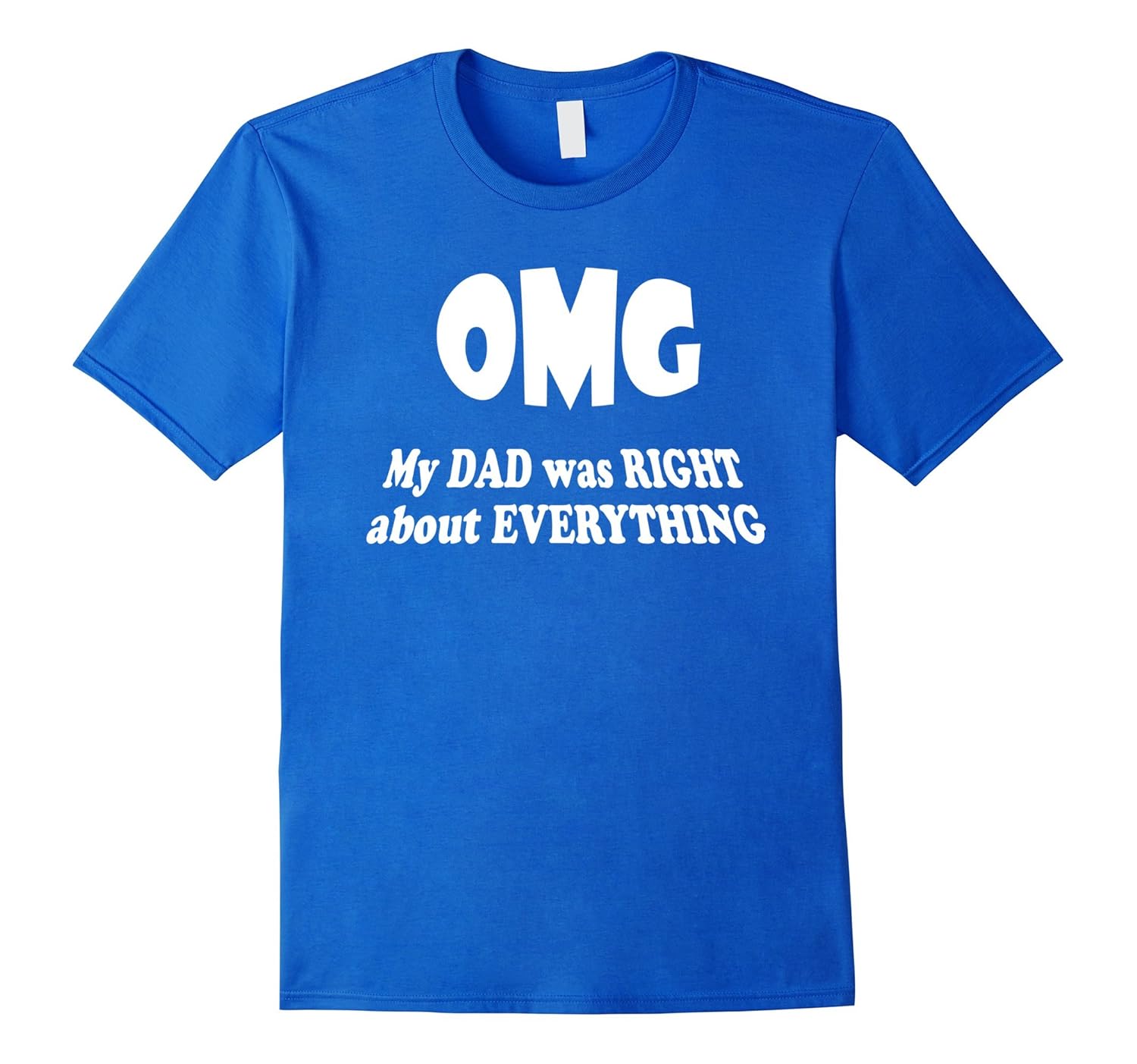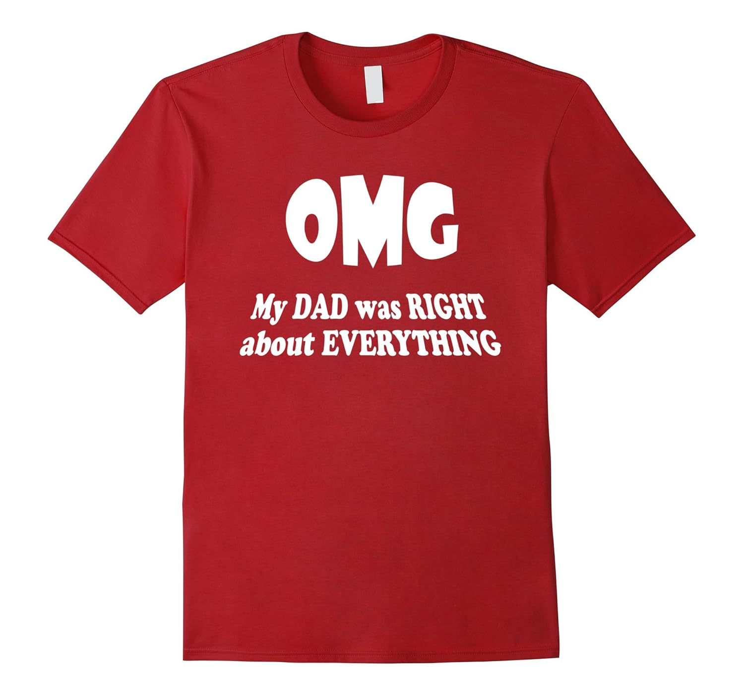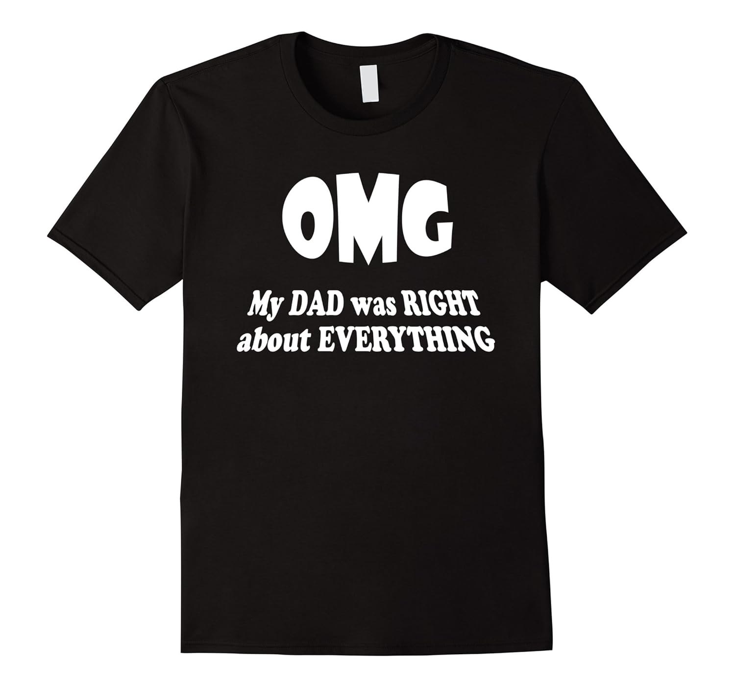Solid colors: 100% Cotton; Heather Grey: 90% Cotton, 10% Polyester; All Other Heathers: 50% Cotton, 50% Polyester; Imported; Machine wash cold with like colors, dry low heat; Oh My God DAD you were RIGHT ABOUT EVERYTHING. Get this T-Shirt to show him. Fathers Day 2018 Gift Idea; Lightweight, Classic fit, Double-needle sleeve and bottom hem
