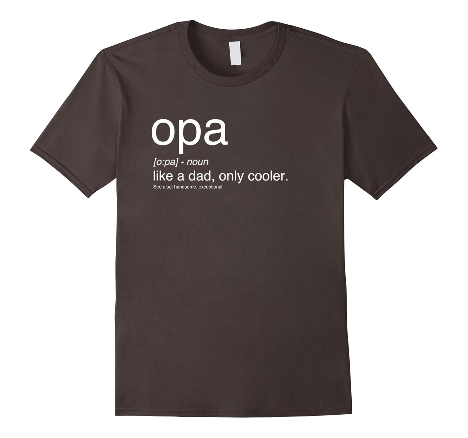 Solid colors: 100% Cotton; Heather Grey: 90% Cotton, 10% Polyester; All Other Heathers: 65% Cotton, 35% Polyester, Imported, Machine wash cold with like colors, dry low heat, Opa definition t shirt makes a great gift for Opa. Opa, like a dad, only cooler! This year, get Opa a gift he will love!, Grandpa. Please, I have a Opa. This makes a great present for Opa from grandson, grand daughter, son, or daughter. Get Opa a gift he will love and wear all the time!, Lightweight, Classic fit, Double-needle sleeve and bottom hem