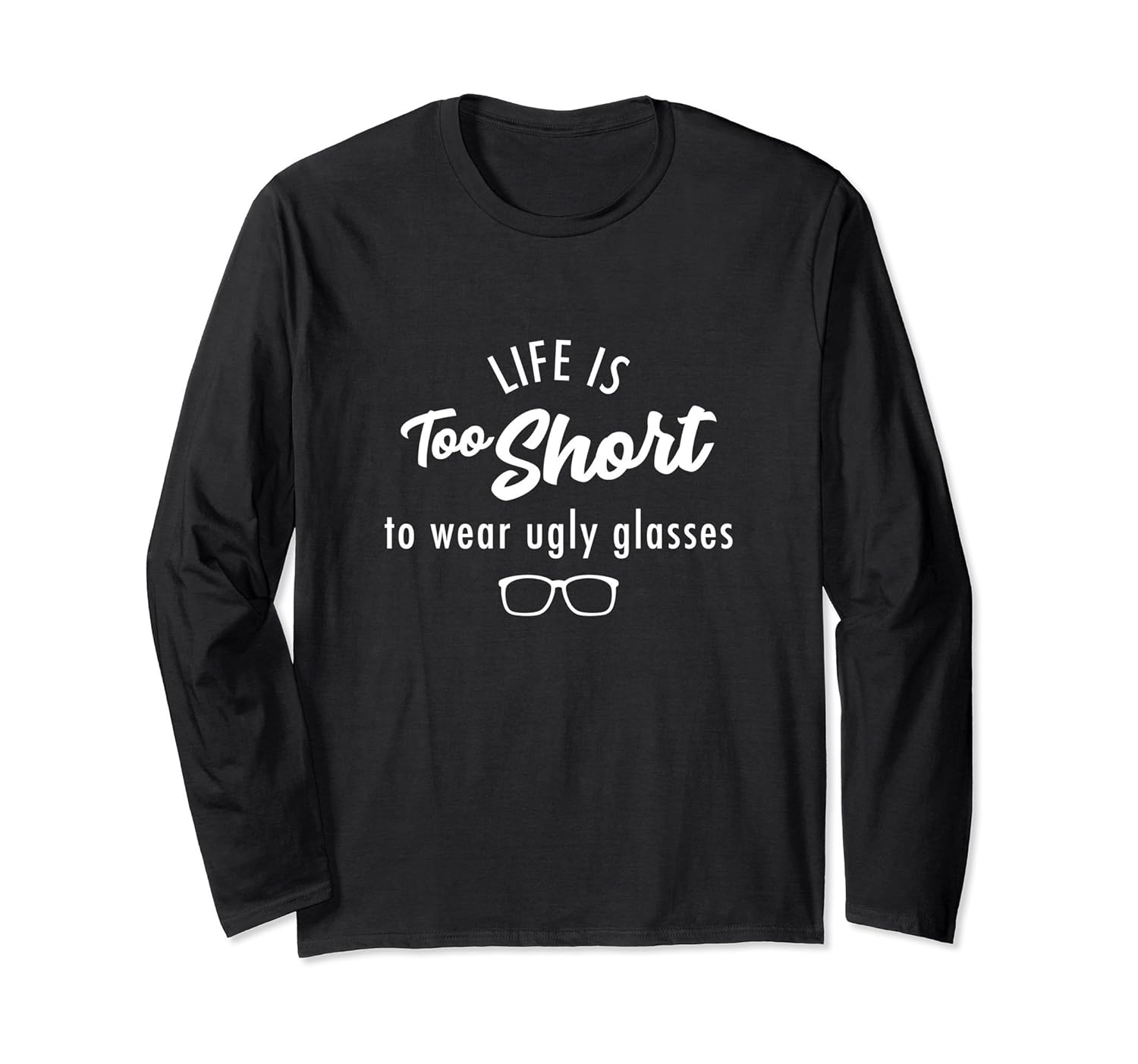 Solid colors: 100% Cotton; Heather Grey: 90% Cotton, 10% Polyester; All Other Heathers: 50% Cotton, 50% Polyester; Imported; Machine wash cold with like colors, dry low heat; Funny optometrist t shirt for eye doctor, ophthalmologist, optometrist. Funny shirt for people who wear glasses.; Life is too short to wear ugly glasses. Funny gift for optometrist, librarian, teacher, scientist, eye glass technician.; Lightweight, Classic fit, Double-needle sleeve and bottom hem