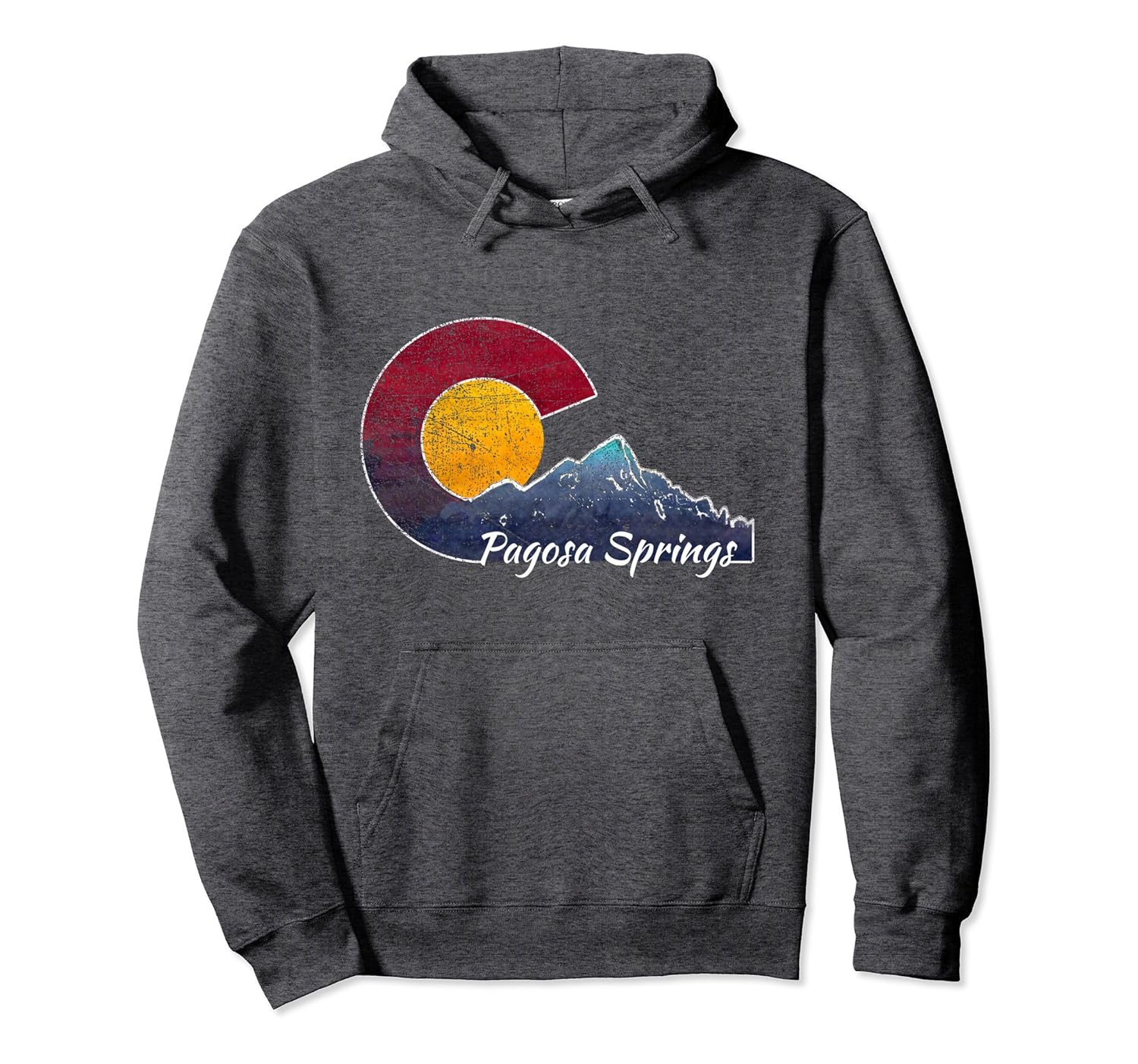 Solid colors: 80% Cotton, 20% Polyester; Heather Grey: 78% Cotton, 22% Poly; Dark Heather: 50% Cotton, 50% Polyester; Imported; Machine wash cold with like colors, dry low heat; Pagosa Springs Colorado Hoodie with flag inspired scenery! This Pagosa Springs Colorado Hoodie can be a gift for men or women who are in love with Pagosa Springs, Colorado!; 8.5 oz, Classic fit, Twill-taped neck