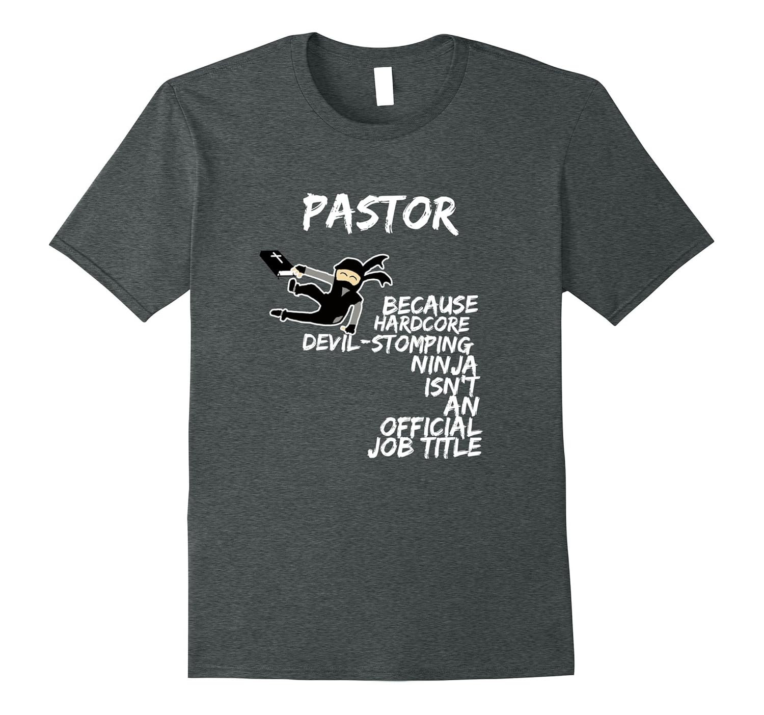 Solid colors: 100% Cotton; Heather Grey: 90% Cotton, 10% Polyester; All Other Heathers: 65% Cotton, 35% Polyester, Imported, Machine wash cold with like colors, dry low heat, Great tshirt for any pastor, minister, clergyman, priest, father, chaplain or preacher. Perfect for Christmas or Birthdays. Pastor because hardcore devil-stomping ninja isn”t an official job title. These pastor appreciation tee shirts fit really well. If you want a more relaxed fit, please go up a size or two. Lightweight, Classic fit, Double-needle sleeve and bottom hem