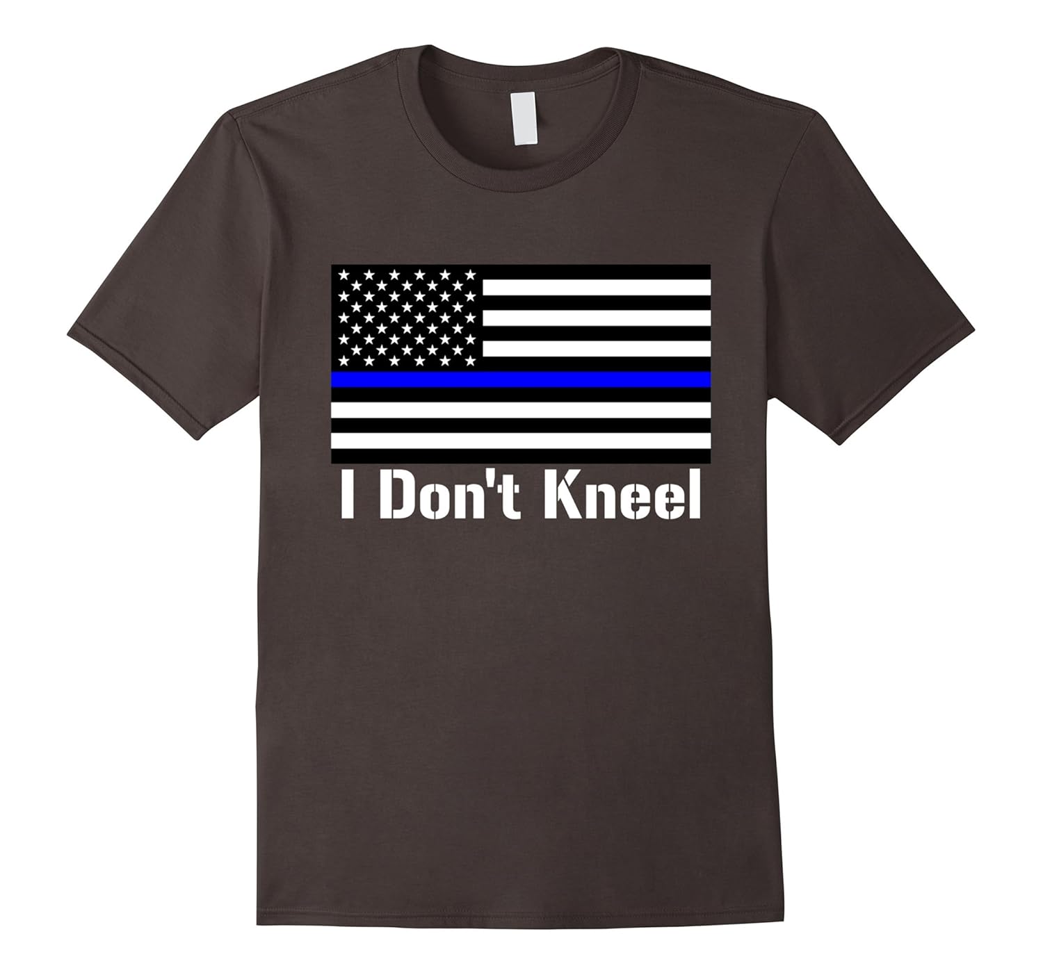 Solid colors: 100% Cotton; Heather Grey: 90% Cotton, 10% Polyester; All Other Heathers: 65% Cotton, 35% Polyester, Imported, Machine wash cold with like colors, dry low heat, For all who served and are serving, I stand in respect when the national anthem is played. I Don”t Kneel shirt features a USA Flag and a Thin Blue Line in Support of our Police Officers who put their lives on the line everyday so we can live safely in this great land. Lightweight, Classic fit, Double-needle sleeve and bottom hem