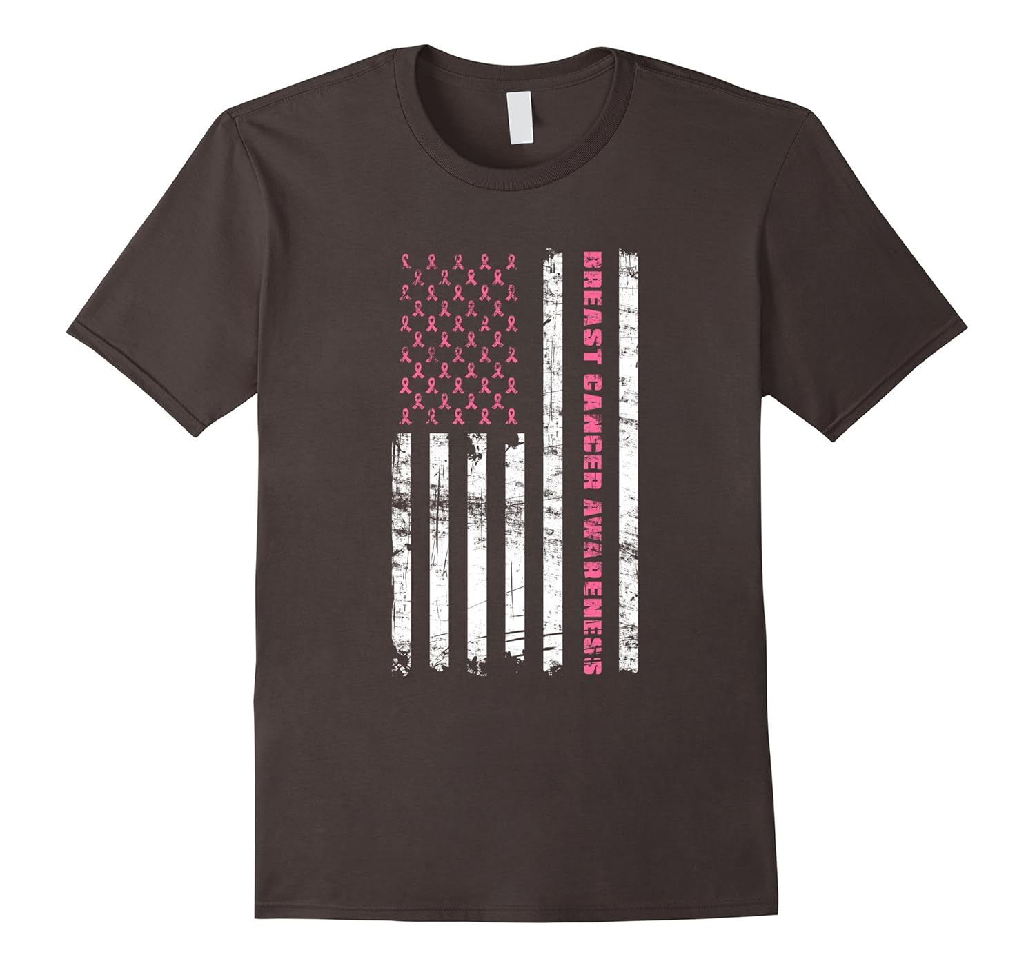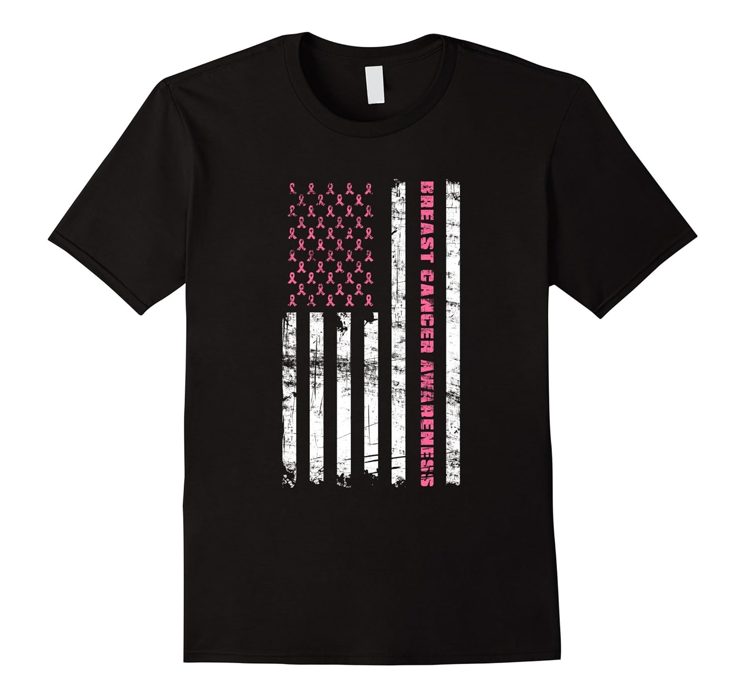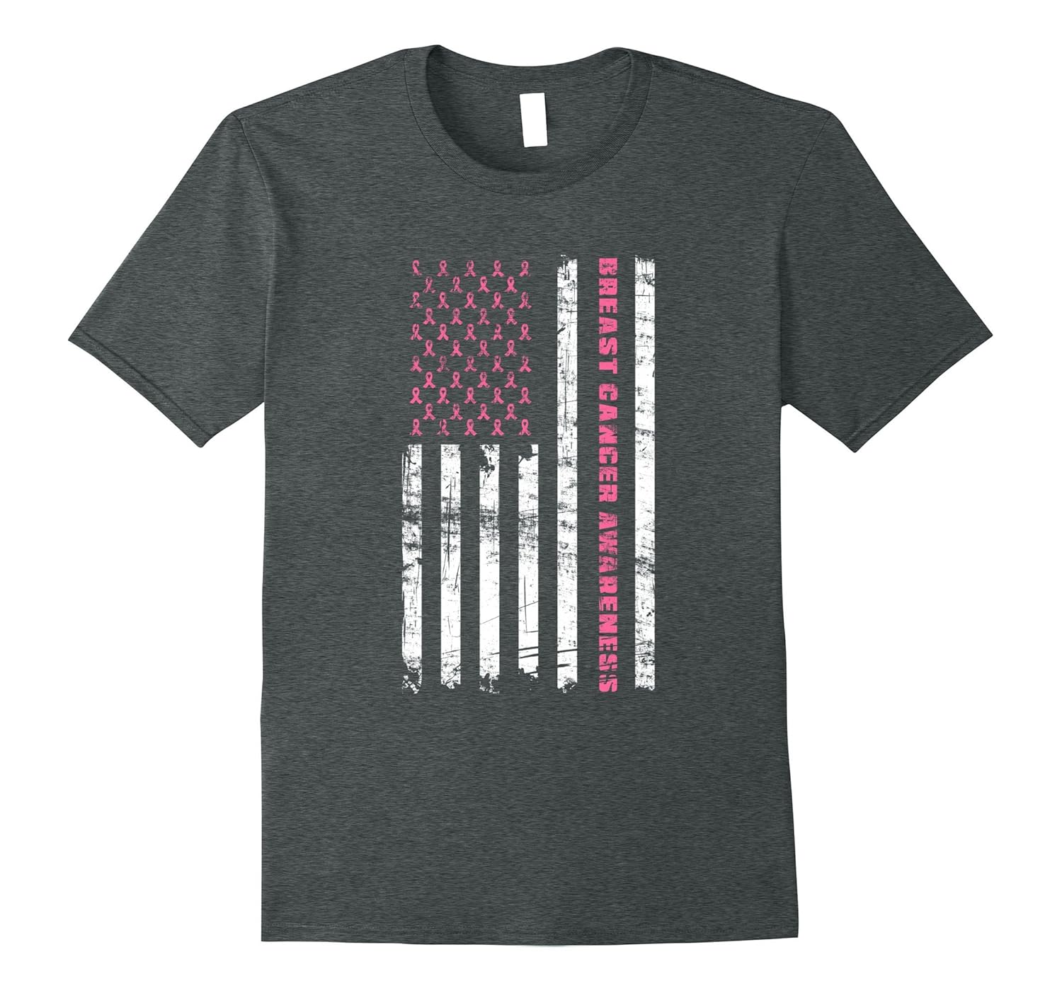 Solid colors: 100% Cotton; Heather Grey: 90% Cotton, 10% Polyester; All Other Heathers: 65% Cotton, 35% Polyester, Imported, Machine wash cold with like colors, dry low heat, Support and motivate women who are battling breast cancer. Spread the awareness of the warriors and survivors of breast cancer. Great breast cancer support shirt. Sport this patriotic US flag with pink ribbons instead of the stars as October is Breast Cancer Awareness Month. Wear this for your wife, sister, mother, daughter, niece, aunt or a friend who needs support to keep up the fight against cancer. Lightweight, Classic fit, Double-needle sleeve and bottom hem