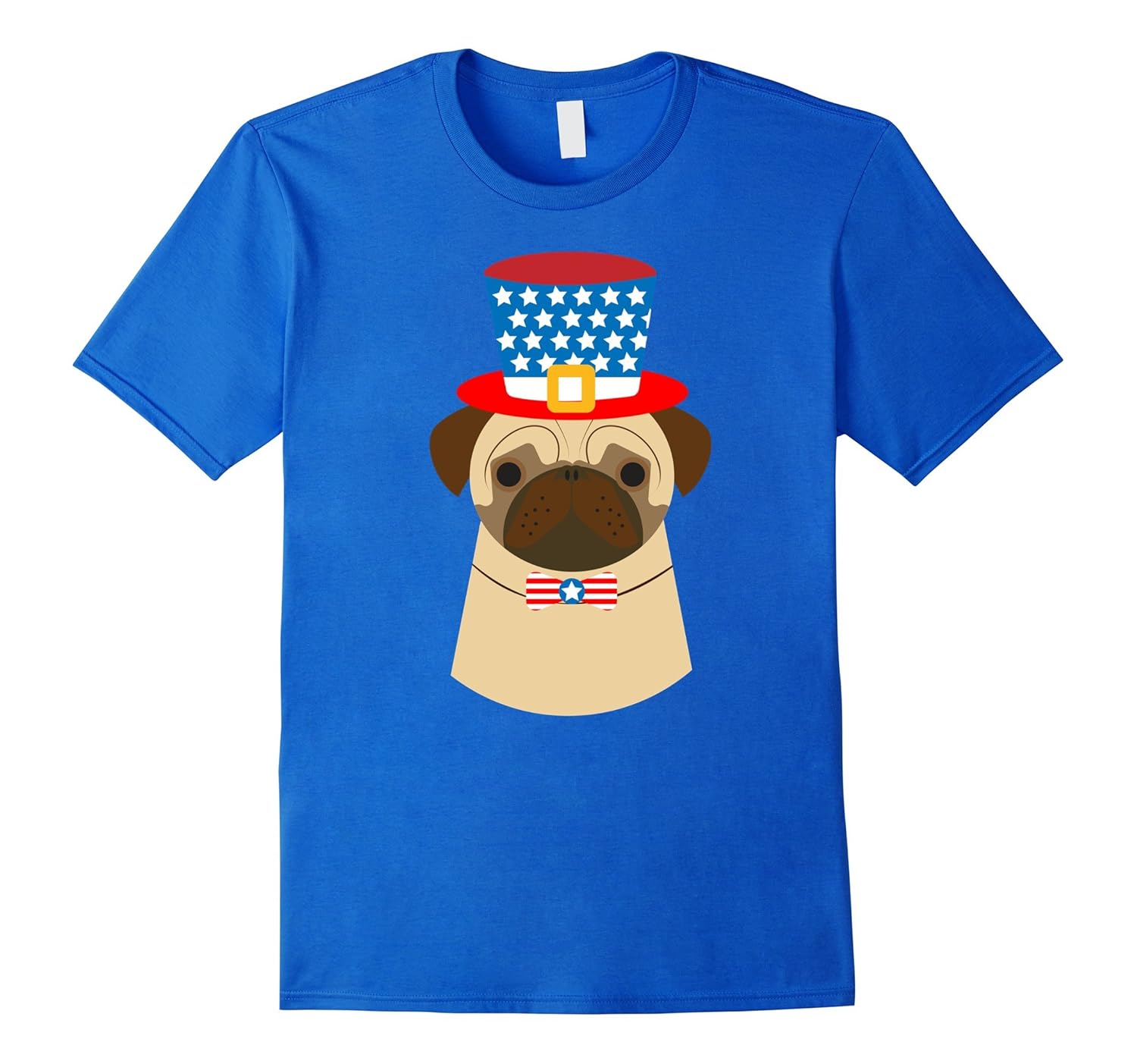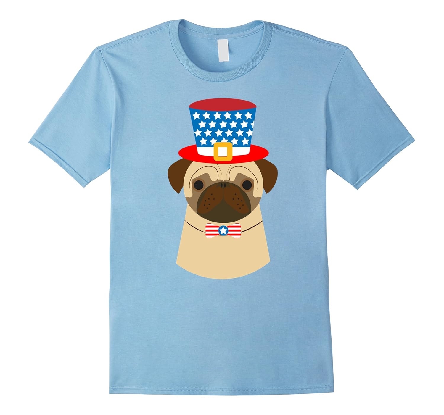 Solid colors: 100% Cotton; Heather Grey: 90% Cotton, 10% Polyester; All Other Heathers: 65% Cotton, 35% Polyester; Imported; Machine wash cold with like colors, dry low heat; Memorial Day, Labor Day, Independence Day appropriate!Hilarious Pug puppy wearing a red, white, and blue costume! Dress your Dog in an Uncle Sam costume! Perfect funny gift for pug owners for Independence Day!; Perfect Christmas or birthday gift for military veterans who are pet owners! Patriotic and crazy about pugs! American Flag design for pug owners with USA Pride! American flag themed tee shirt for 4th of July BBQs with your pet!; Lightweight, Classic fit, Double-needle sleeve and bottom hem