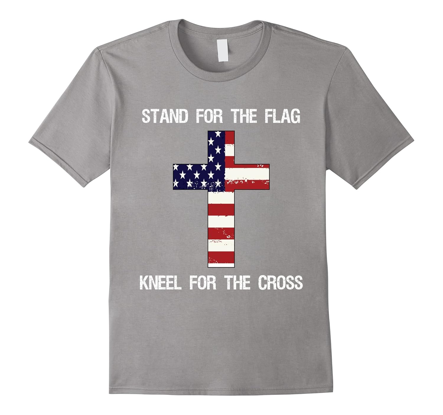 Solid colors: 100% Cotton; Heather Grey: 90% Cotton, 10% Polyester; All Other Heathers: 65% Cotton, 35% Polyester; Imported; Machine wash cold with like colors, dry low heat; This patriotic tee makes the perfect birthday gift or christmas gift for USA veteran – or any proud patriot. Perfect to wear on Independence day or any day to show your support that youre proud to be American and love God; Featuring the US Flag and cross, this distressed Stand For The Flag, Kneel for the Cross Shirt is perfect for anyone looking for christian t-shirts cheap. It doesnt have to be 4th of July to show your USA pride.; Lightweight, Classic fit, Double-needle sleeve and bottom hem