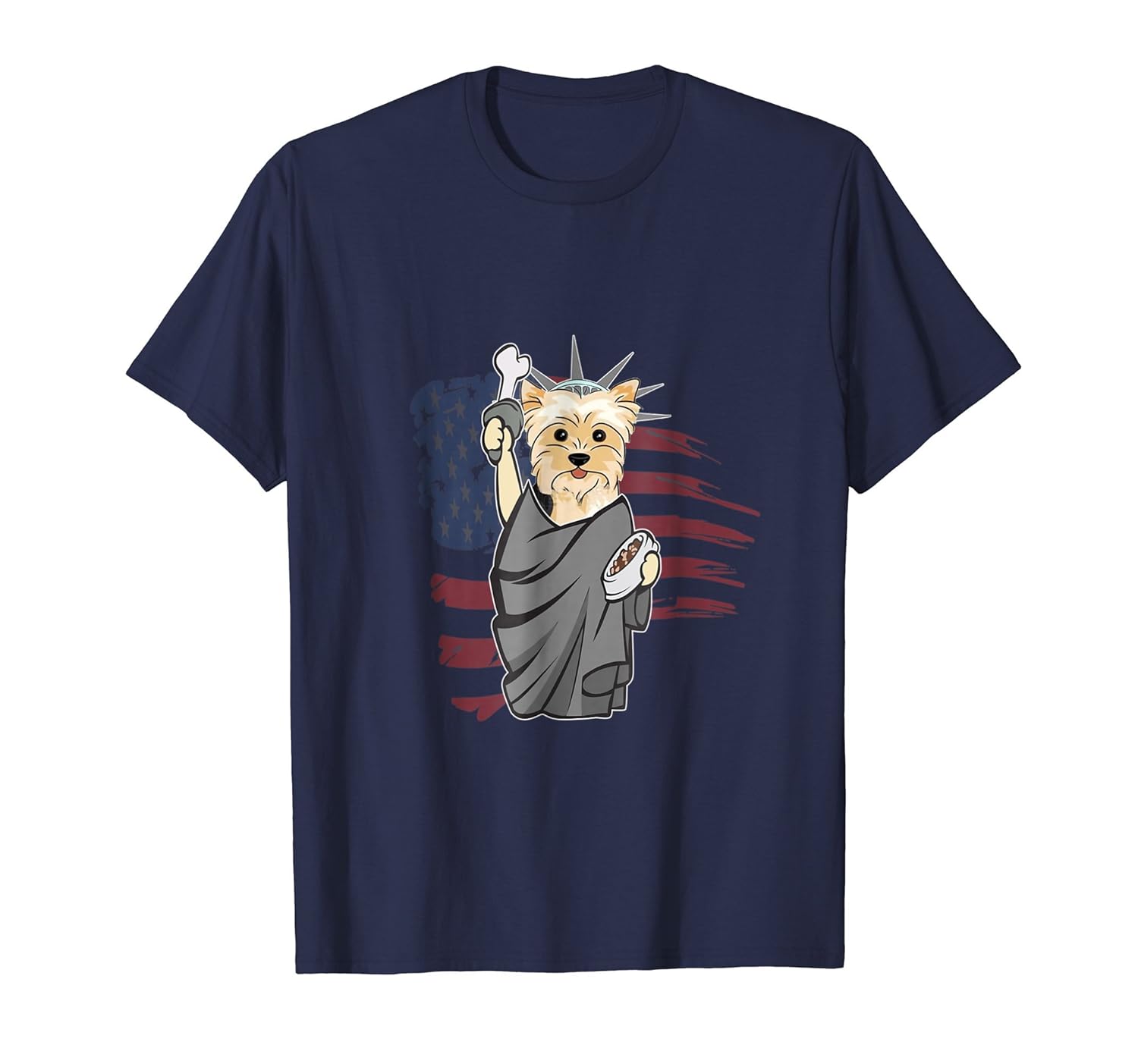Solid colors: 100% Cotton; Heather Grey: 90% Cotton, 10% Polyester; All Other Heathers: 50% Cotton, 50% Polyester; Imported; Machine wash cold with like colors, dry low heat; Independence Day July 4th 2018 is around of corner. You want to celebrate this day with your puppy. Purchase this special Tee with liberty dog symbol and awesome American Flag for yourself or for your relatives as a funny outfit gift.; This Yorkie Shirt is perfect for any men or woman, Mom, Daddy, Grandpa, Grandmon, Daughter and Son who want to show American Pride.; Lightweight, Classic fit, Double-needle sleeve and bottom hem