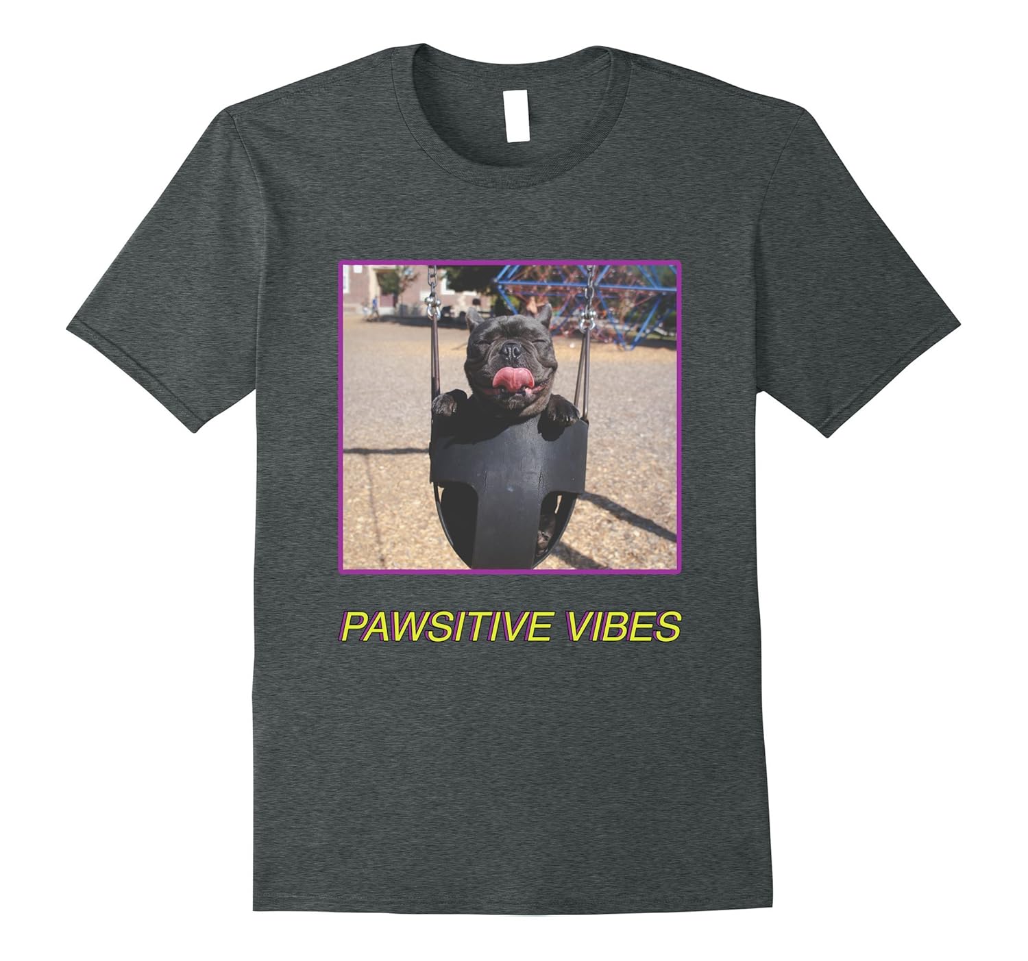 Solid colors: 100% Cotton; Heather Grey: 90% Cotton, 10% Polyester; All Other Heathers: 65% Cotton, 35% Polyester, Imported, Machine wash cold with like colors, dry low heat, This humor motivational tee features a frenchie swinging on a swing with the words “pawsitive vibes”. This hip dog tee is perfect for women, men, girls, and boys. Be hipster af or just that guy or gal with a love for frenchies. Sport this happy frenchie shirt at the next block party. Show your french bulldog love to friends. An inspirational tee for lovers of dogs. Best worn in groups, a party, or yoga class. Get as gift for dog lover friend or a mom or dad. Lightweight, Classic fit, Double-needle sleeve and bottom hem