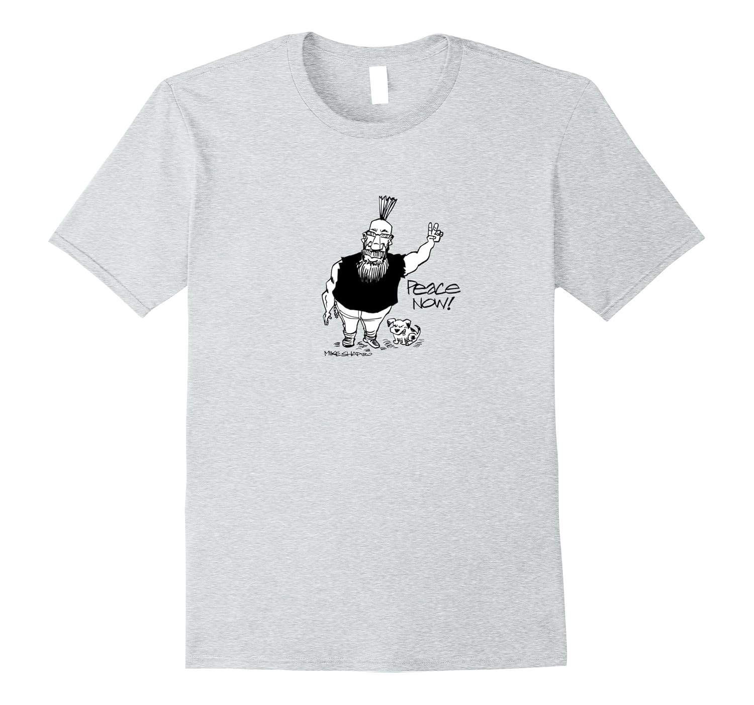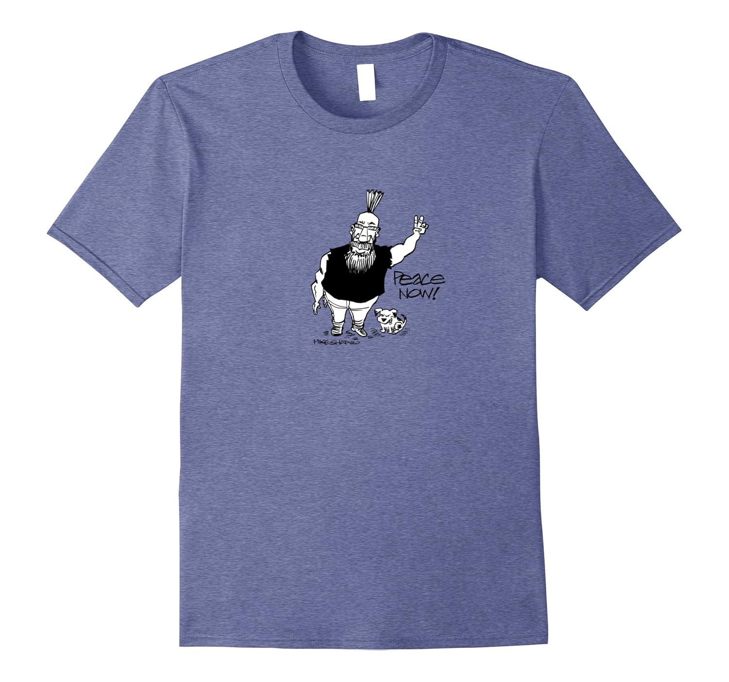 Solid colors: 100% Cotton; Heather Grey: 90% Cotton, 10% Polyester; All Other Heathers: 65% Cotton, 35% Polyester, Imported, Machine wash cold with like colors, dry low heat, Comfy t-shirt demanding Peace Now featuring giant biker and world famous Snarling Pup!, Lightweight, Classic fit, Double-needle sleeve and bottom hem