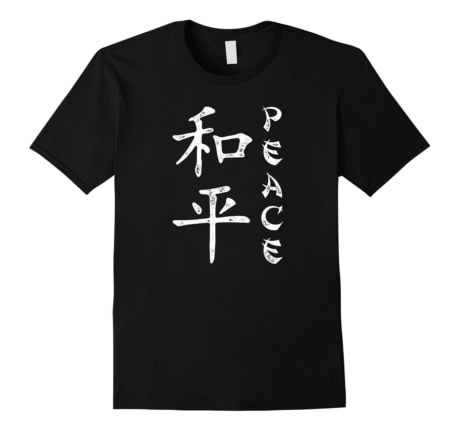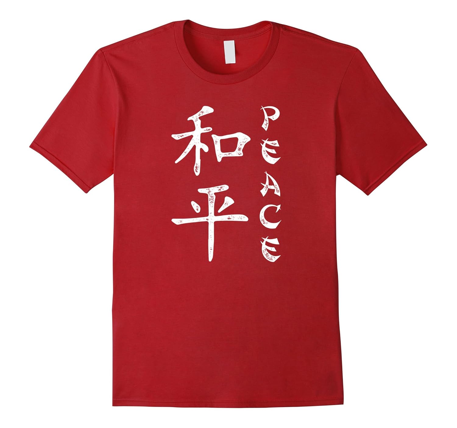 Solid colors: 100% Cotton; Heather Grey: 90% Cotton, 10% Polyester; All Other Heathers: 65% Cotton, 35% Polyester; Imported; Machine wash cold with like colors, dry low heat; This Peace Chinese calligraphy shirt combines the word Peace with its corresponding Chinese or Japanese Kanji characters. This Chinese character shirt brings Asian and American culture together in a distressed, novelty tee that will delight peace seekers.; This Peace T-shirt with Chinese characters is fitted. For a looser fit, please order a size larger than typical. This Kanji shirt is perfect birthday gift or Christmas gift for men, women boys or girls who love world peace, and China or Japan.; Lightweight, Classic fit, Double-needle sleeve and bottom hem