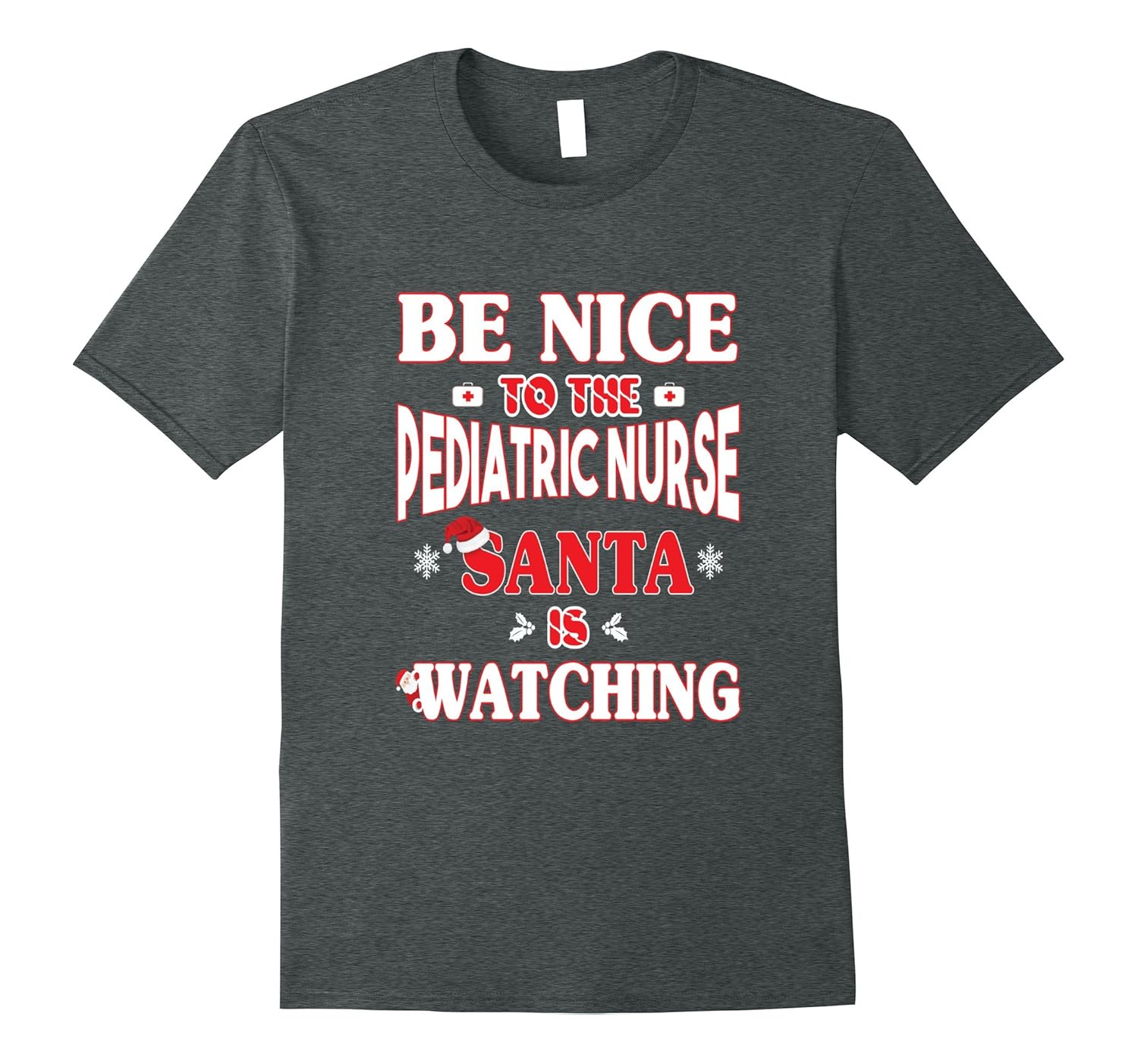 Solid colors: 100% Cotton; Heather Grey: 90% Cotton, 10% Polyester; All Other Heathers: 65% Cotton, 35% Polyester, Imported, Machine wash cold with like colors, dry low heat, Pediatric Nurse Shirt-Be Nice To the Pediatric Nurse-Santa Is Watching, Trying to find the perfect Pediatric Nurse gifts for Christmas. Look no further. This adorable pediatric nurse tee is just the right fit!, Lightweight, Classic fit, Double-needle sleeve and bottom hem