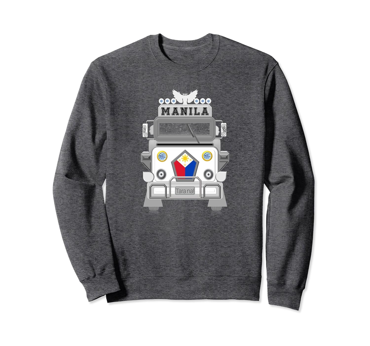 Solid colors: 80% Cotton, 20% Polyester; Heather Grey: 78% Cotton, 22% Poly; Dark Heather: 50% Cotton, 50% Polyester; Imported; Machine wash cold with like colors, dry low heat; Love Manila, Philippines? The Jeepney in the Philippines is one of the most interesting things to experience.; Carry your experience of riding the jeepney with this shirt. Get cozy while you are missing the Philippines.; 8.5 oz, Classic fit, Twill-taped neck
