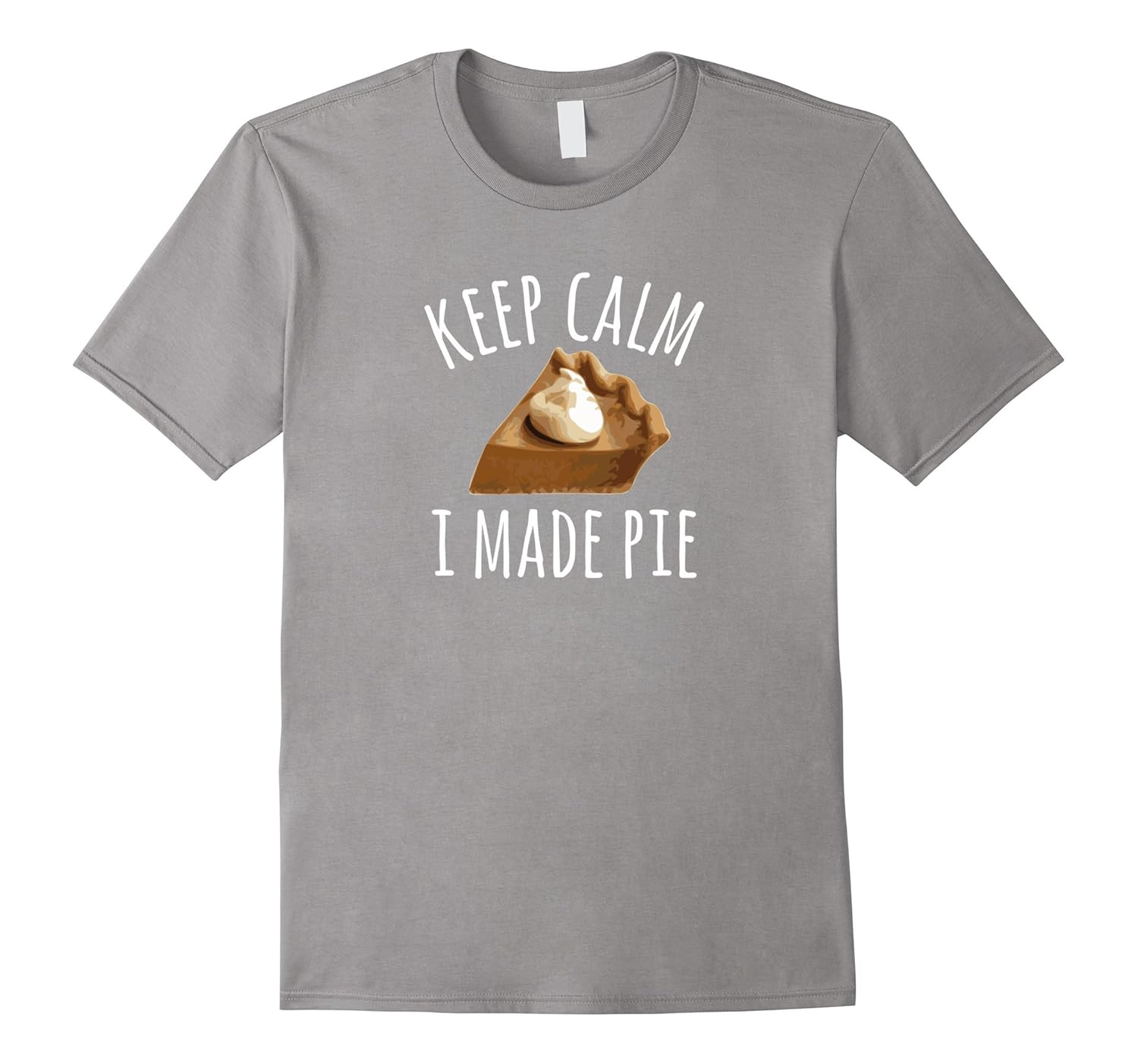 Solid colors: 100% Cotton; Heather Grey: 90% Cotton, 10% Polyester; All Other Heathers: 65% Cotton, 35% Polyester, Imported, Machine wash cold with like colors, dry low heat, Bakers and pie-makers out there, here is a shirt for you! Tee says “Keep Calm, I Made Pie,” with a slice of pumpkin pie pictured! Great t-shirt for bakery owners, moms and dads, and anyone who loves baking! Super fun tee for Thanksgiving and Christmas!, Shirts are slightly fitted; consider sizing up for looser fit. MORE COLORS in separate listing. Lightweight, Classic fit, Double-needle sleeve and bottom hem