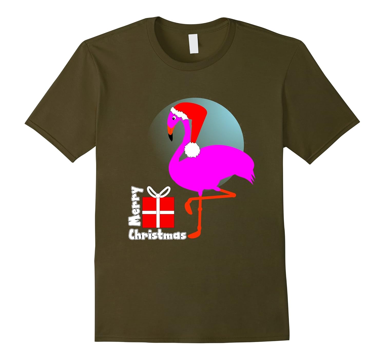 Pink Flamingo Merry Christmas Cute Fun Xmas Novelty T-Shirt-ANZ